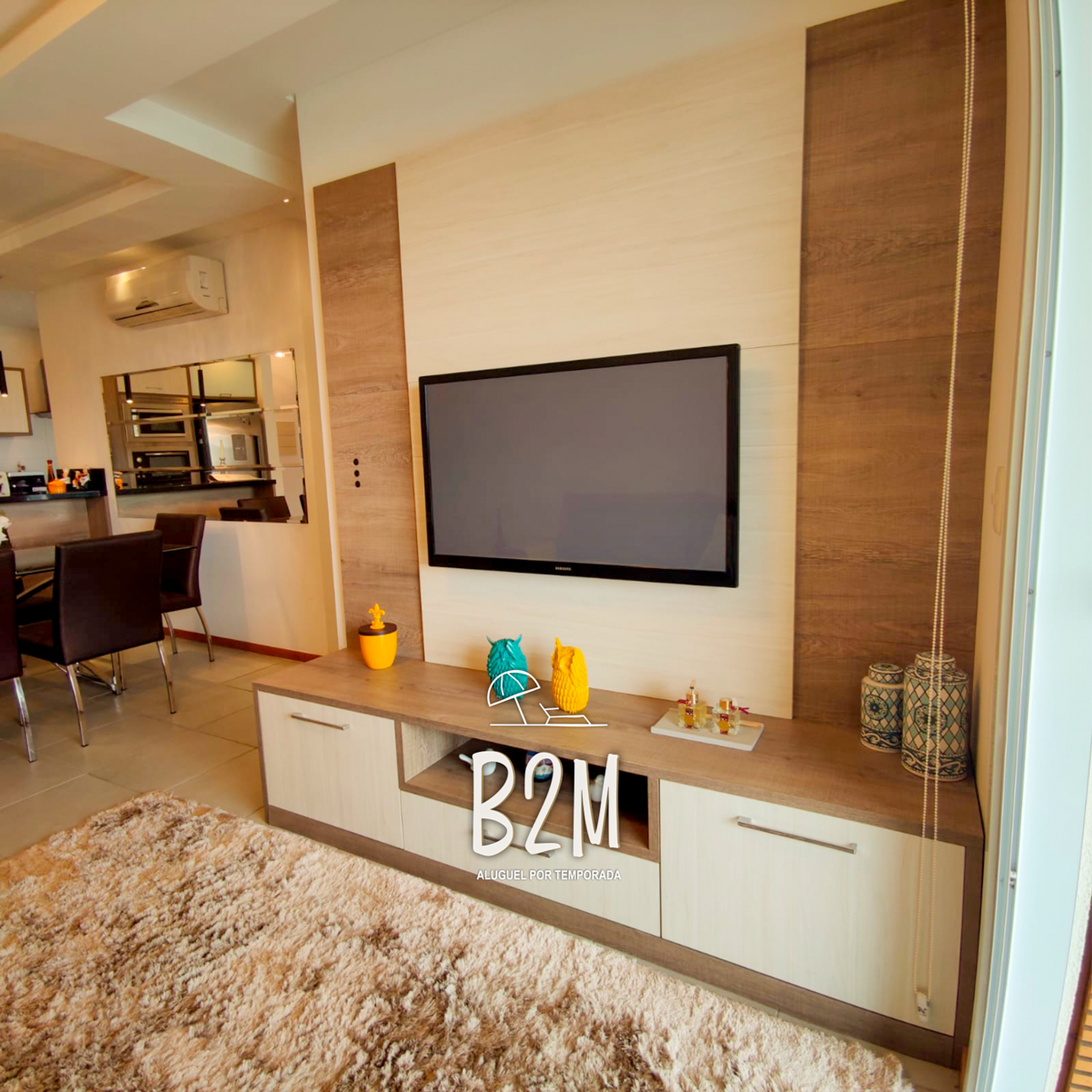 Sofá retrátil, decoração com papel de parede alto relevo, televisão, internet wifi, ar condicionado, mesa de jantar para 6 pessoas