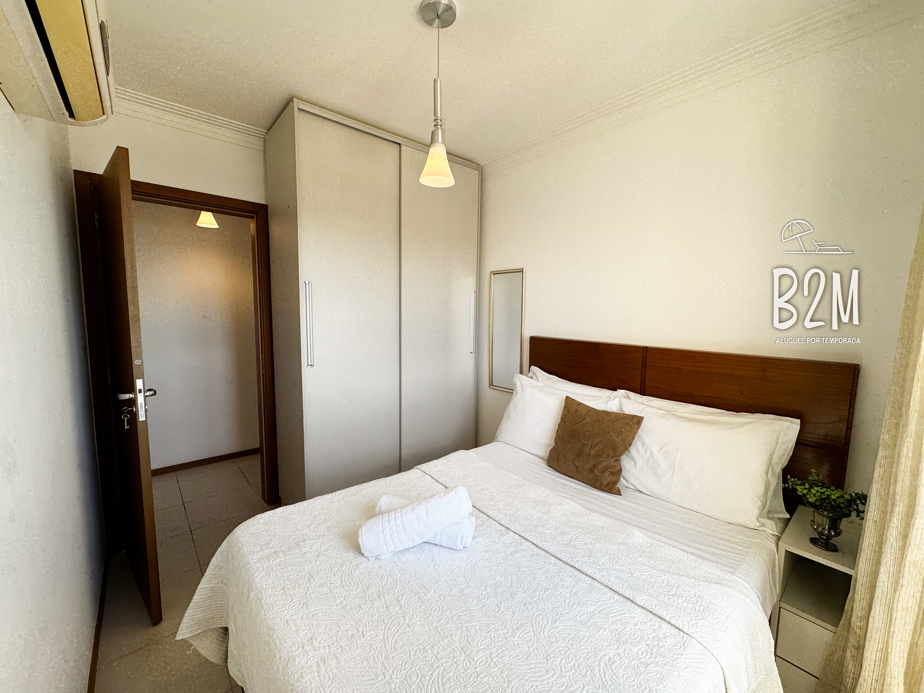 varanda com vista do mar, 1 cama queen, 1 colchão de solteiro extra, ar condicionado, armário, banheiro privativo com água aquecida