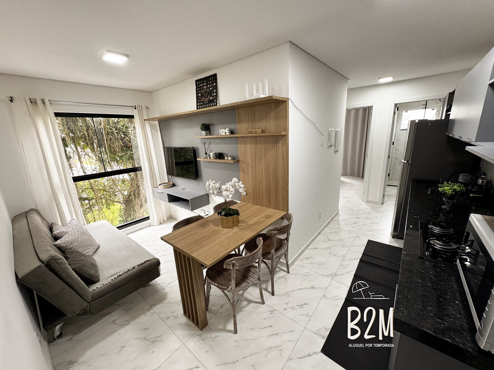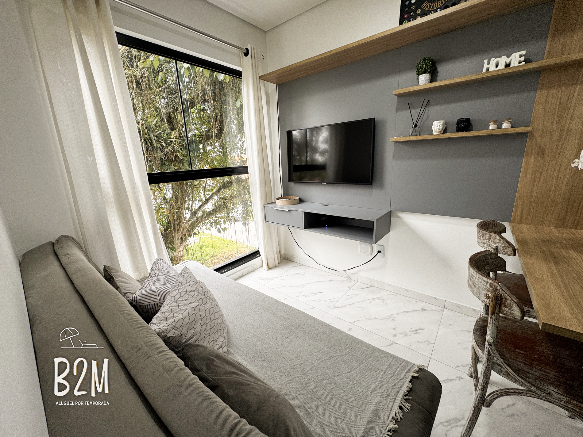 sofá cama, televisão, internet wifi, mesa para 4 pessoas,