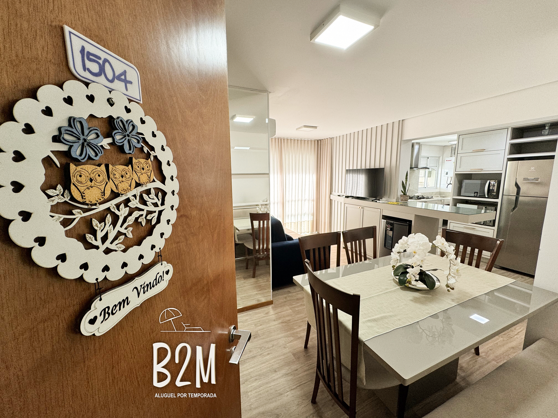 sofá, estante, smarttv, tvbox, cervejeira, ar condicionado, mesa de jantar para 6 pessoas