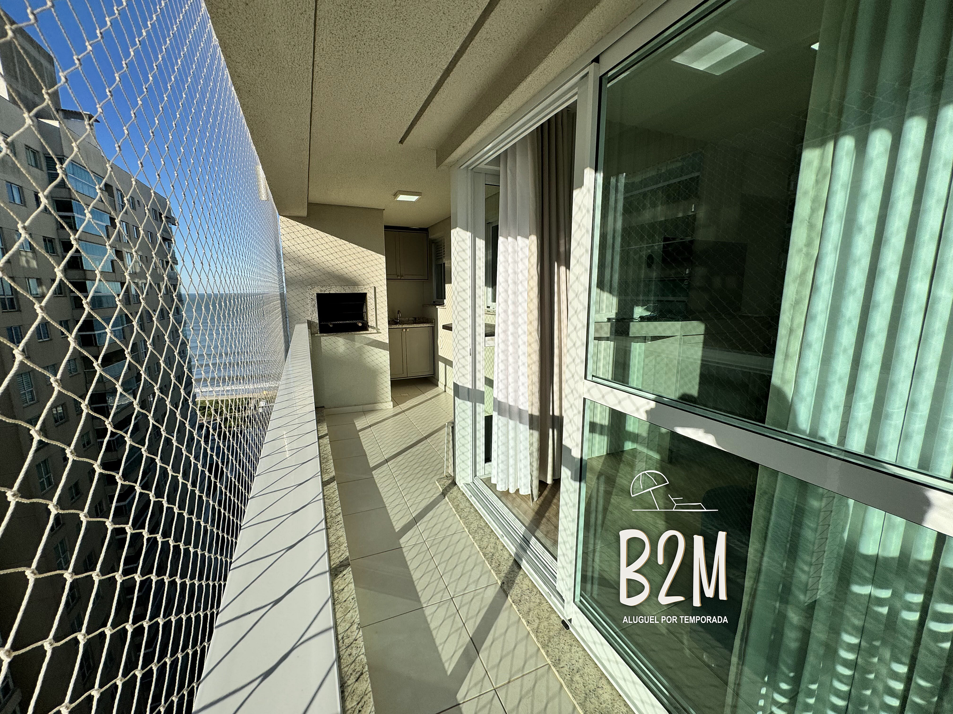 churrasqueira, bancada com pia, vista do mar
