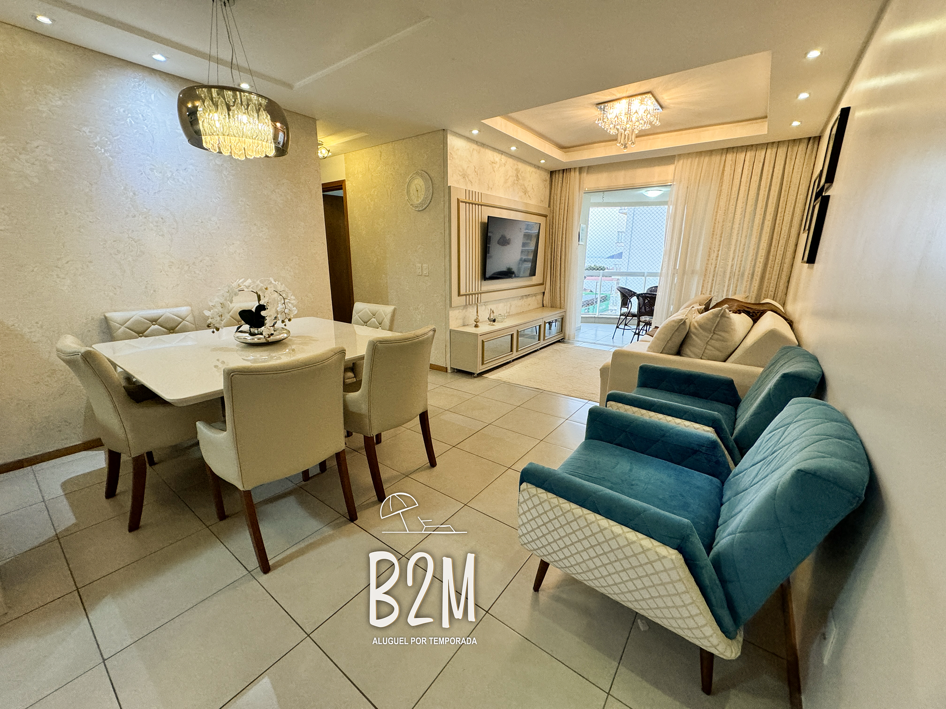 sofá, 2 poltronas, televisão, internet wifi, mesa de jantar para 6 pessoas, decoração elegante