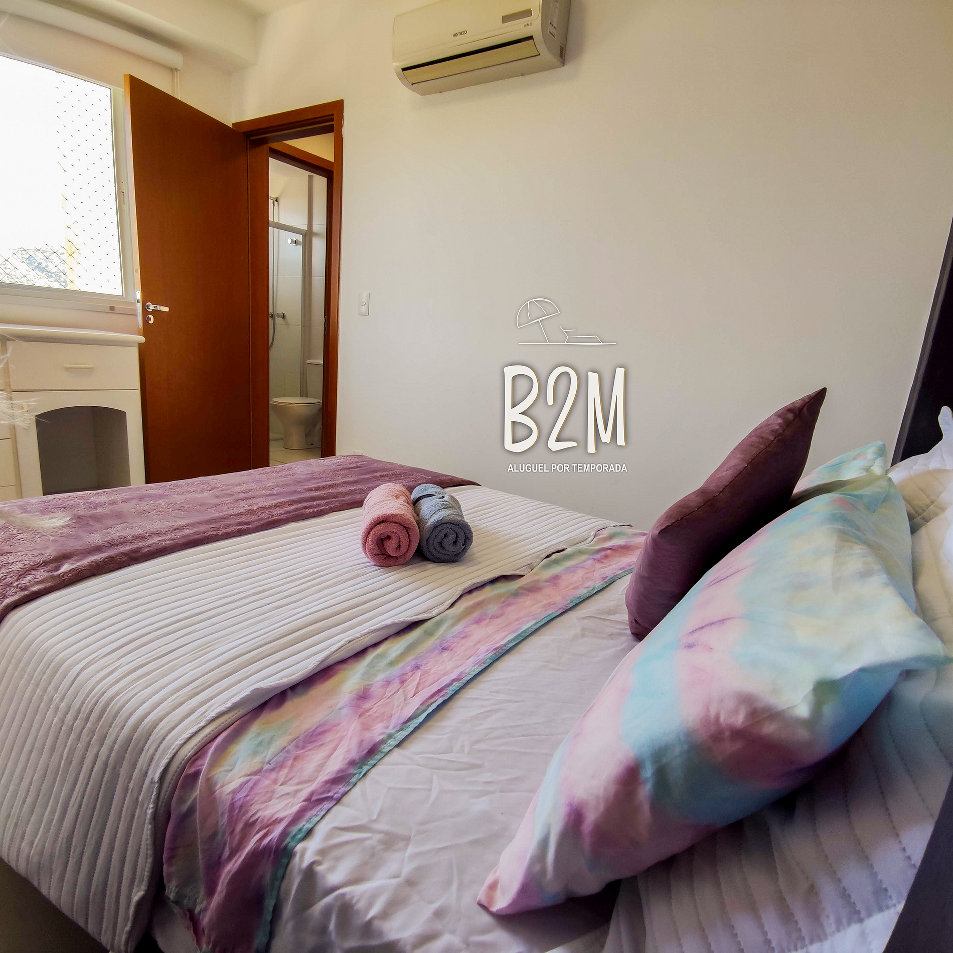 1 cama casal, ar condicionado, cômoda, criado mudo, cortina com blackout