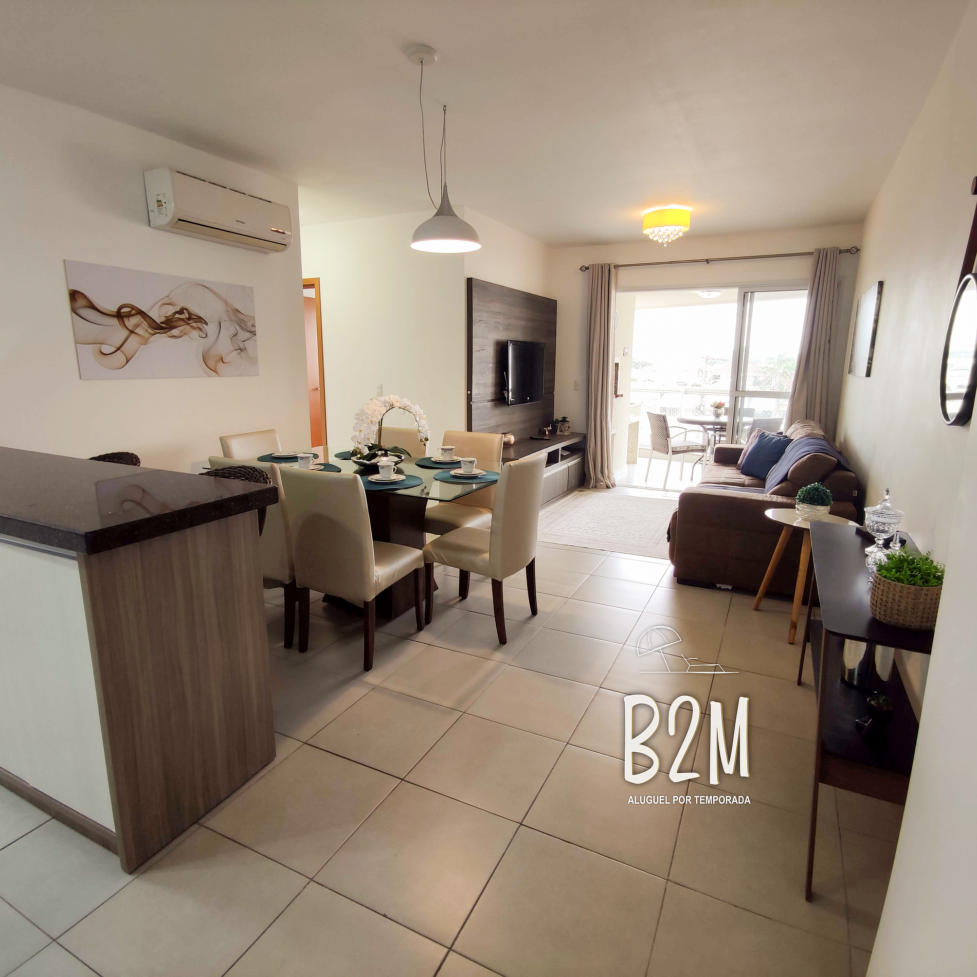sofá confortável, televisão, internet wifi, ar condicionado, mesa de jantar para 6 pessoas