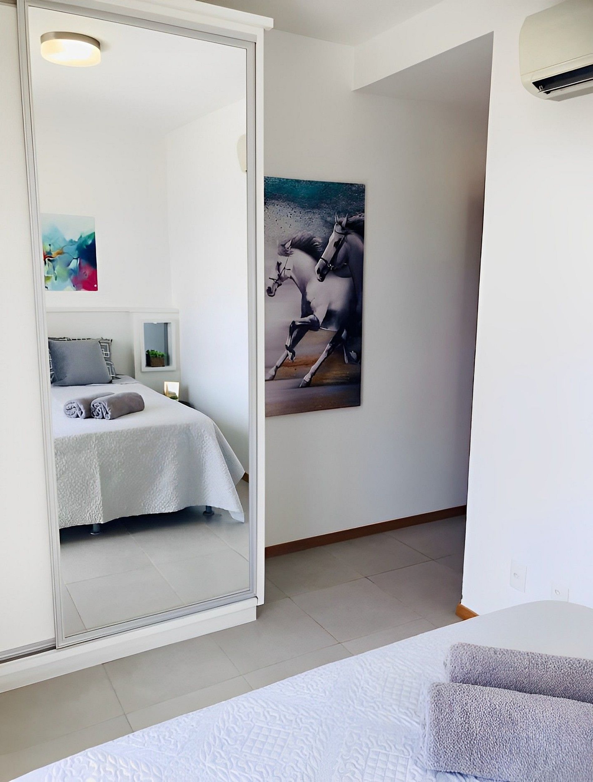 1 cama casal, ar condicionado, cômoda, berço portátil, cortina com blackout