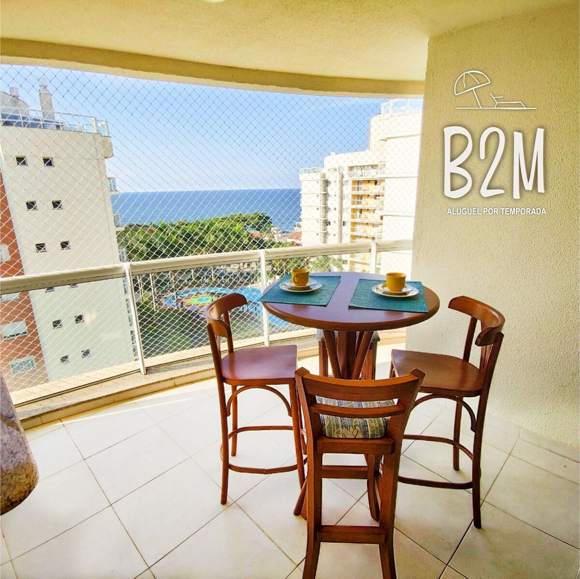 varanda com vista privilegiada do mar, 1 cama de casal, ar condicionado, cortina com blackout, armário, banheiro privativo
