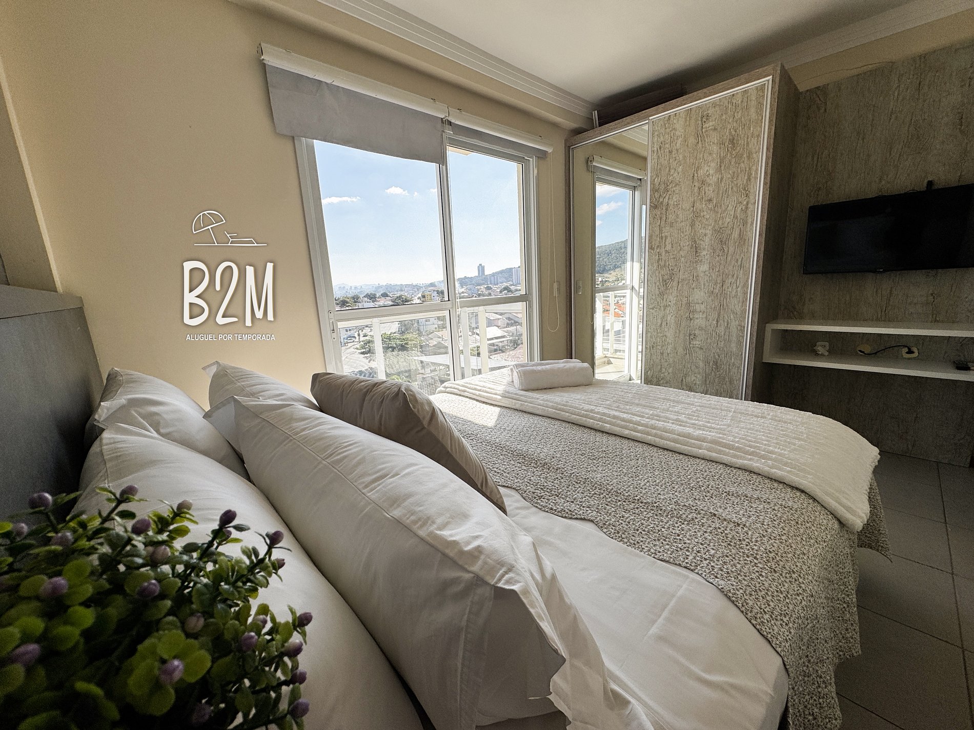 janela com vista mar, 1 cama de casal, ar condicionado, armário