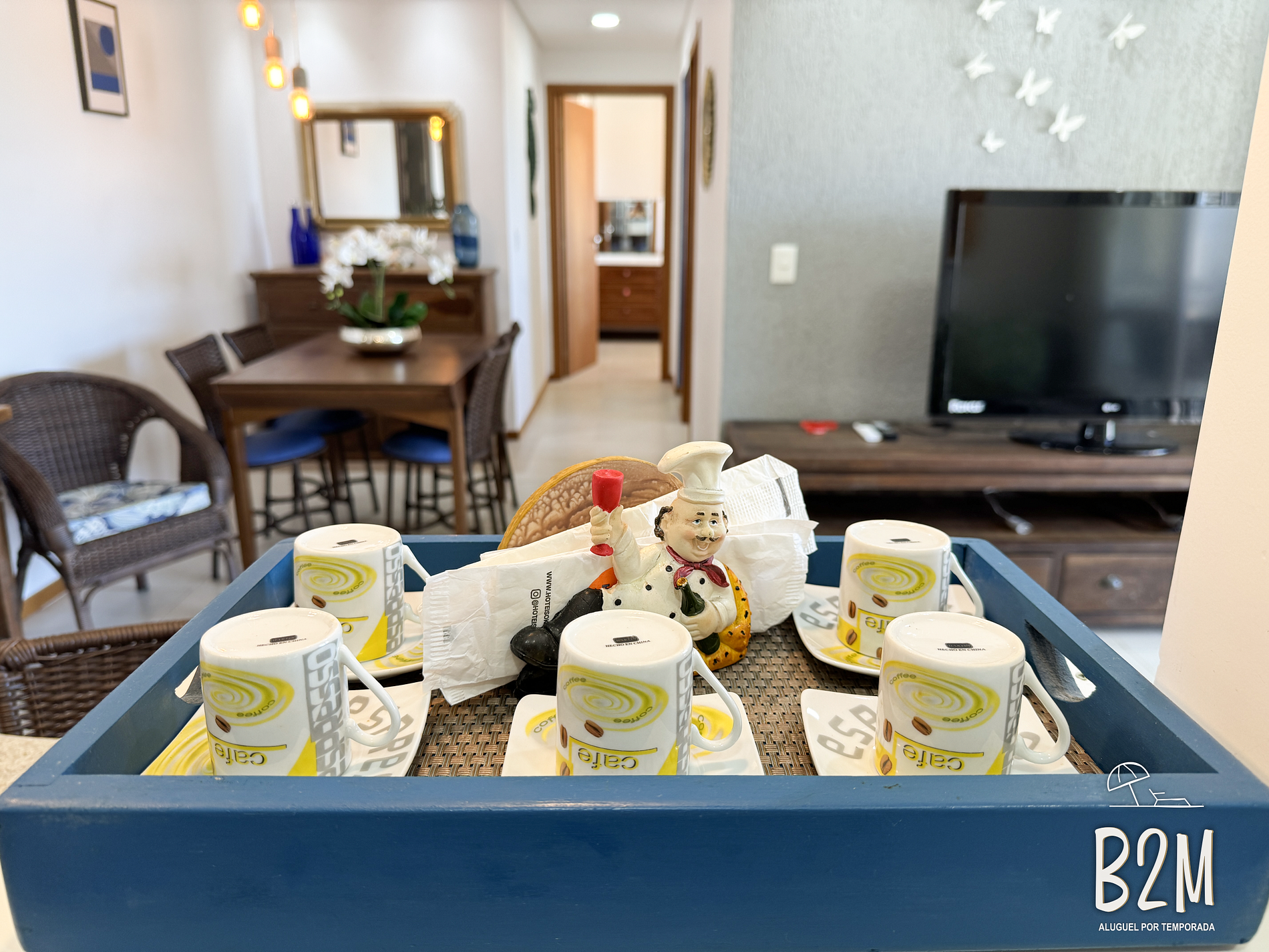 sofá, televisão, internet wifi, ar condicionado, mesa de jantar para 5 pessoas, bancada com 2 cadeiras
