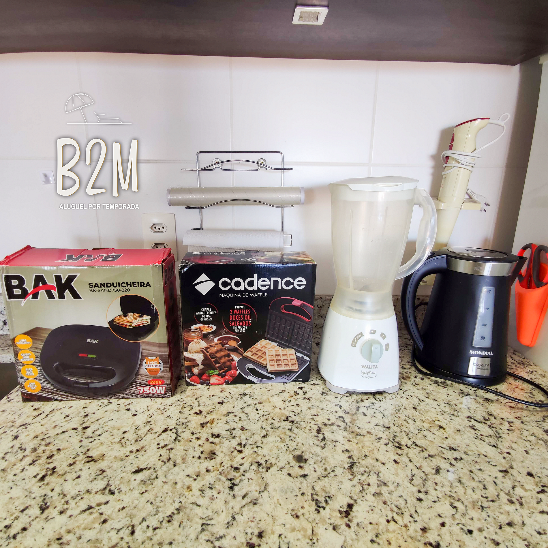 geladeira, microondas, fogão, forno, liquidificador, sanduicheira, maquina de waffle, panelas, talheres e utensílios para o preparado de deliciosas refeições