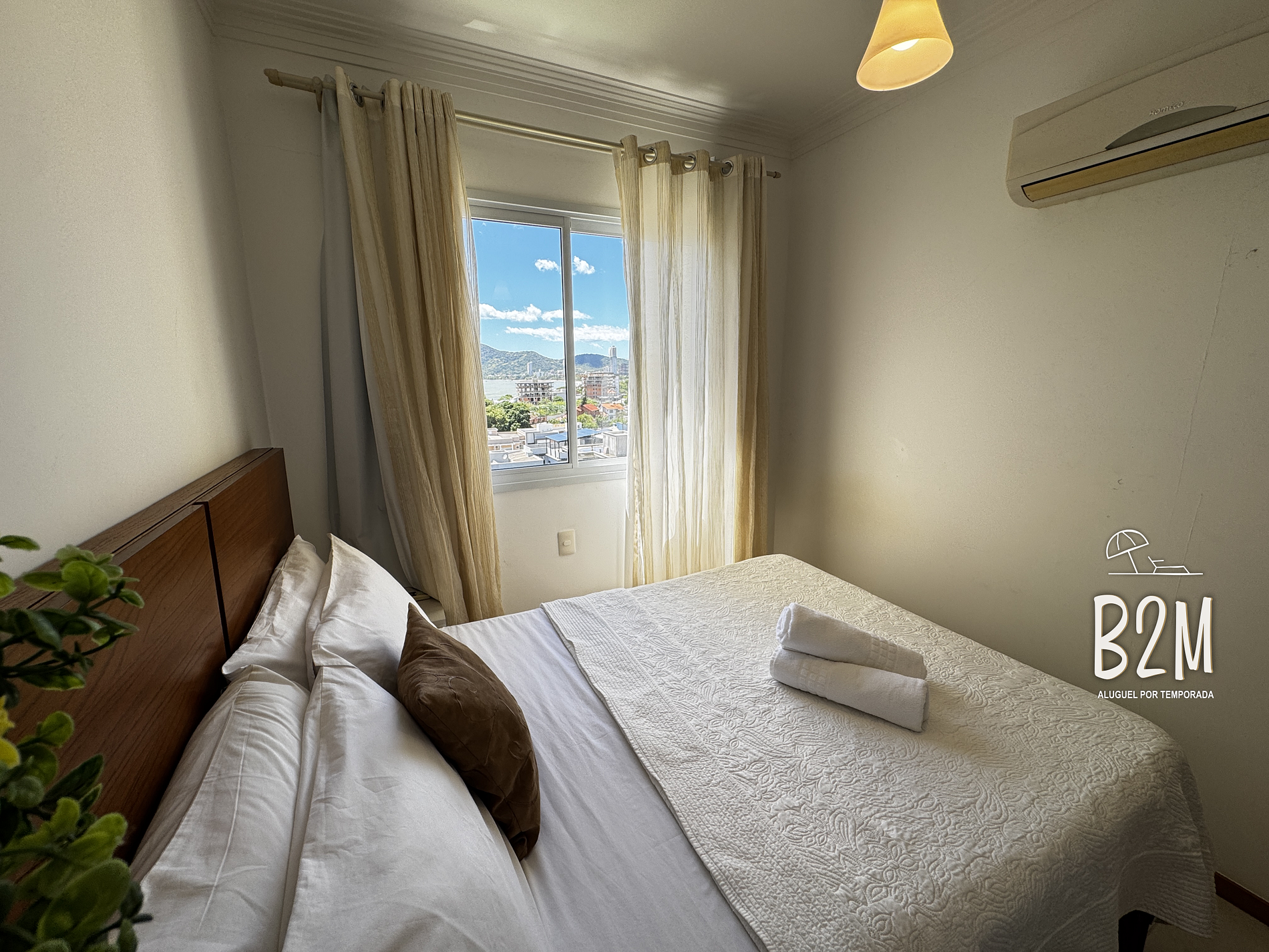janela com vista da piscina, 1 cama de casal, ar condicionado, armário