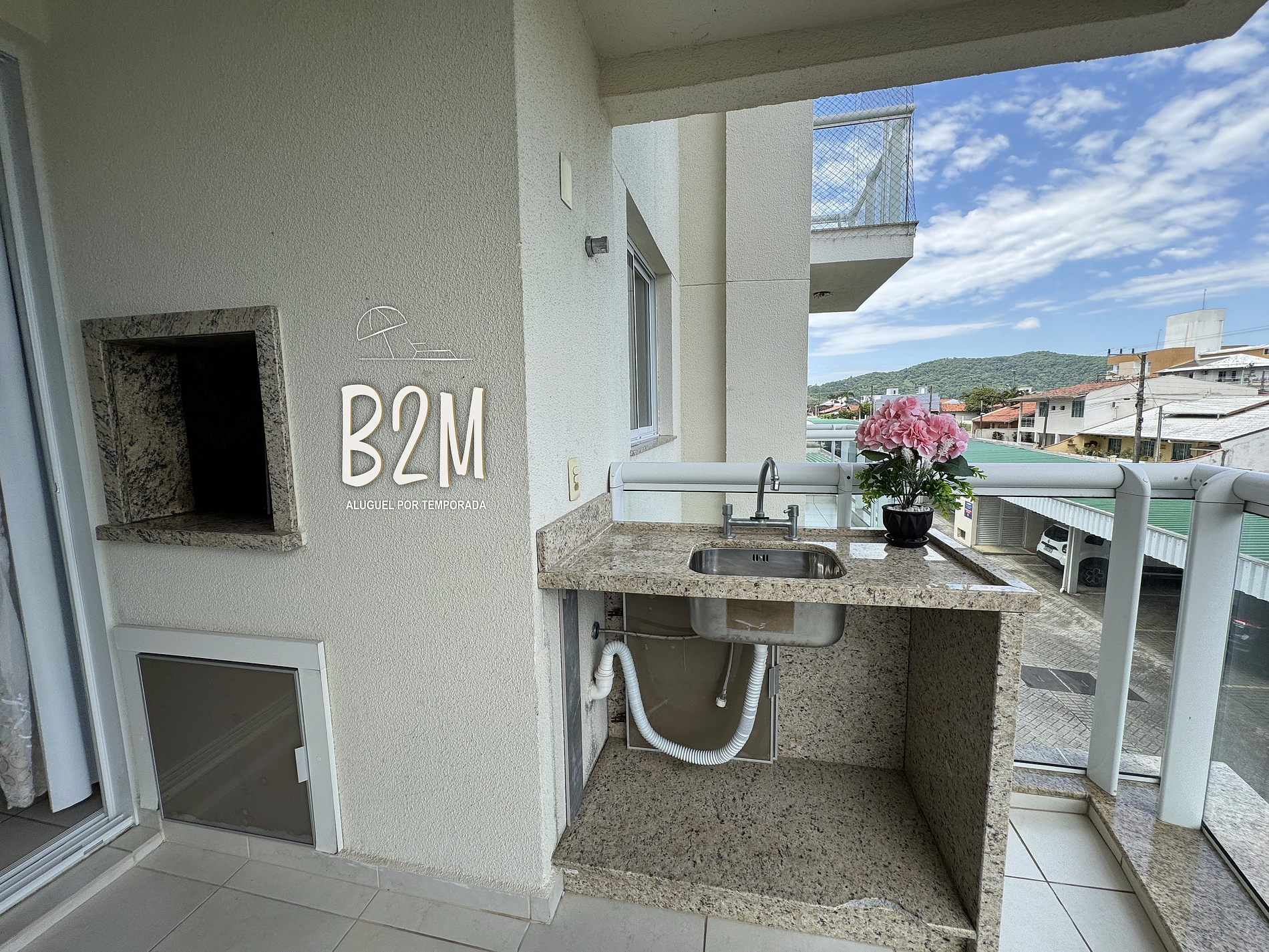 vista do mar, churrasqueira, pia com bancada