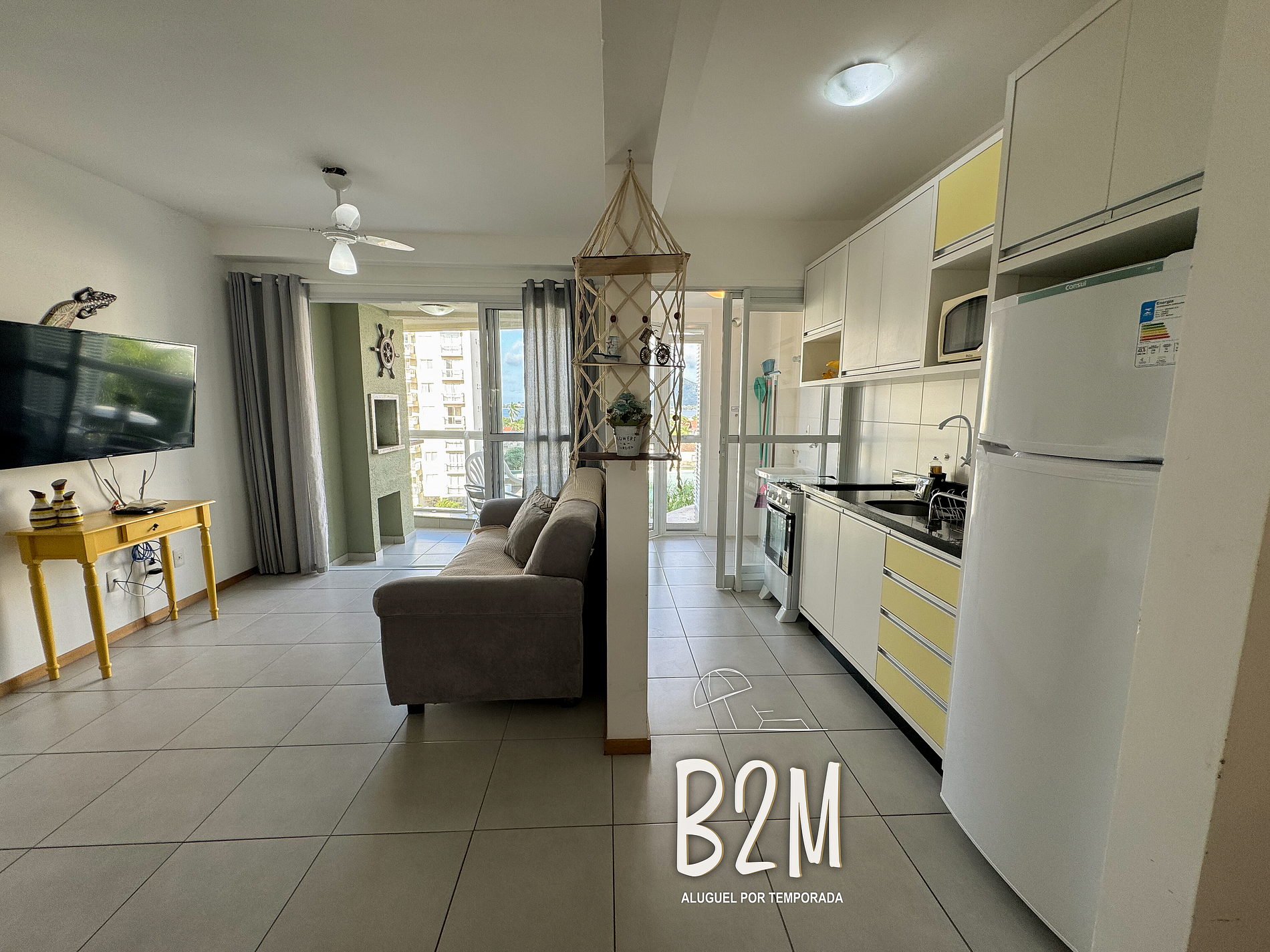 sofá, televisão, internet wifi, ventilador, mesa de jantar para 6 pessoas