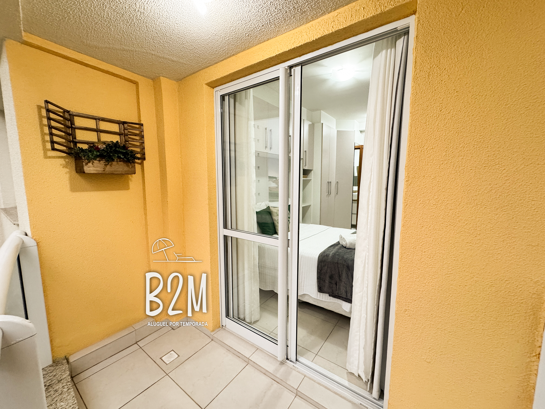 varanda, cama de casal, ar condicionado, televisão, cortina com blackout, armário, banheiro privativo com água quente