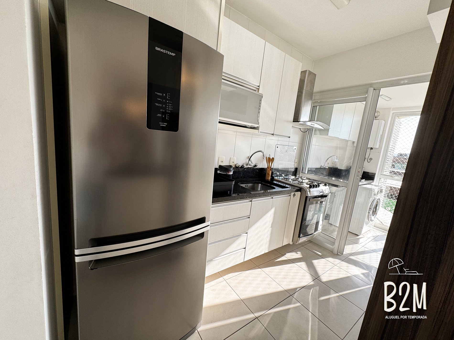 geladeira, freezer, microondas, fogão, forno, liquidificador, sanduicheira, panelas, talheres e utensílios para o preparado de refeições