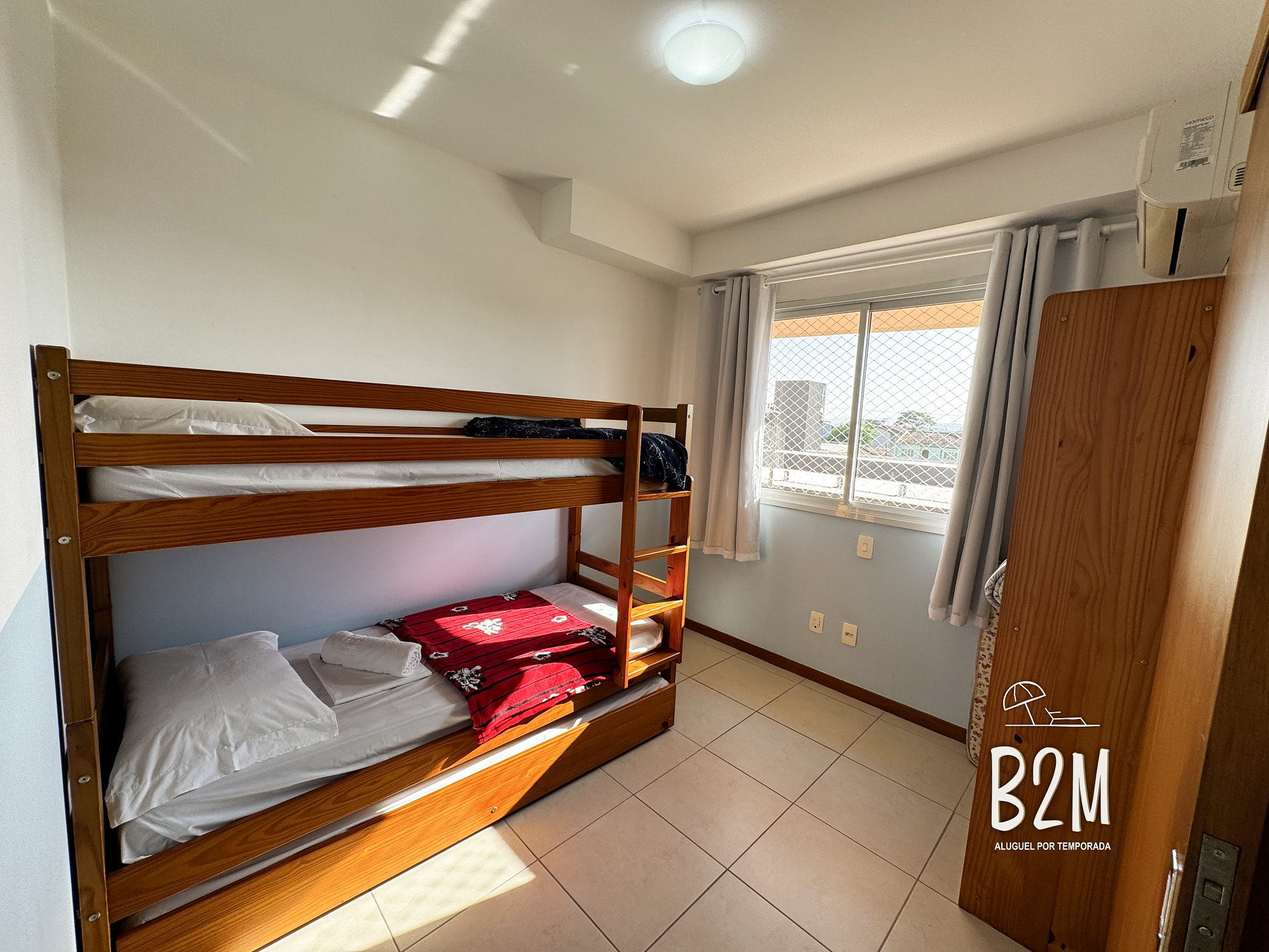janela, 3 camas de solteiro, ar condicionado, cortina