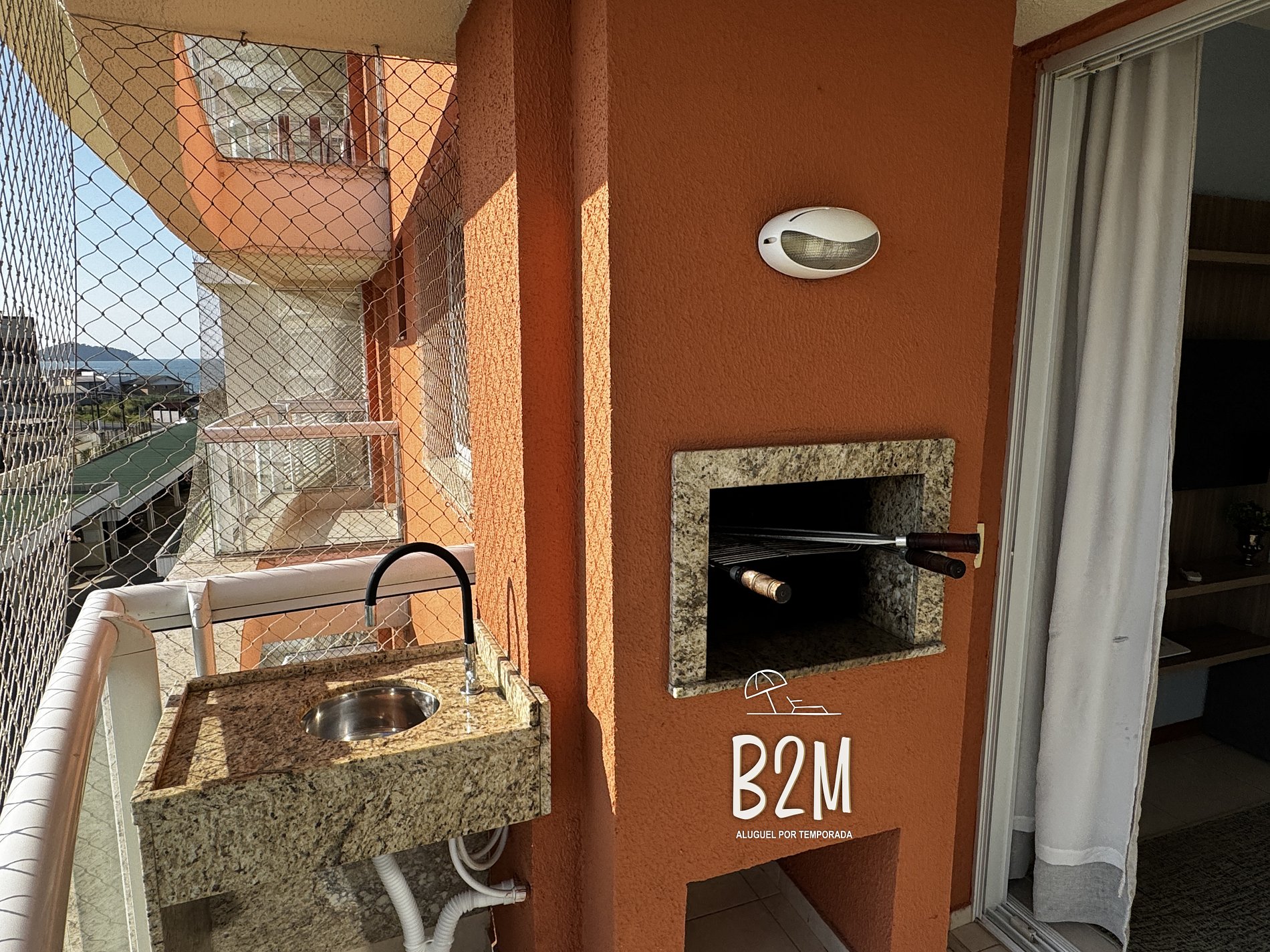 Bem iluminado e equipado com churrasqueira e vista mar.