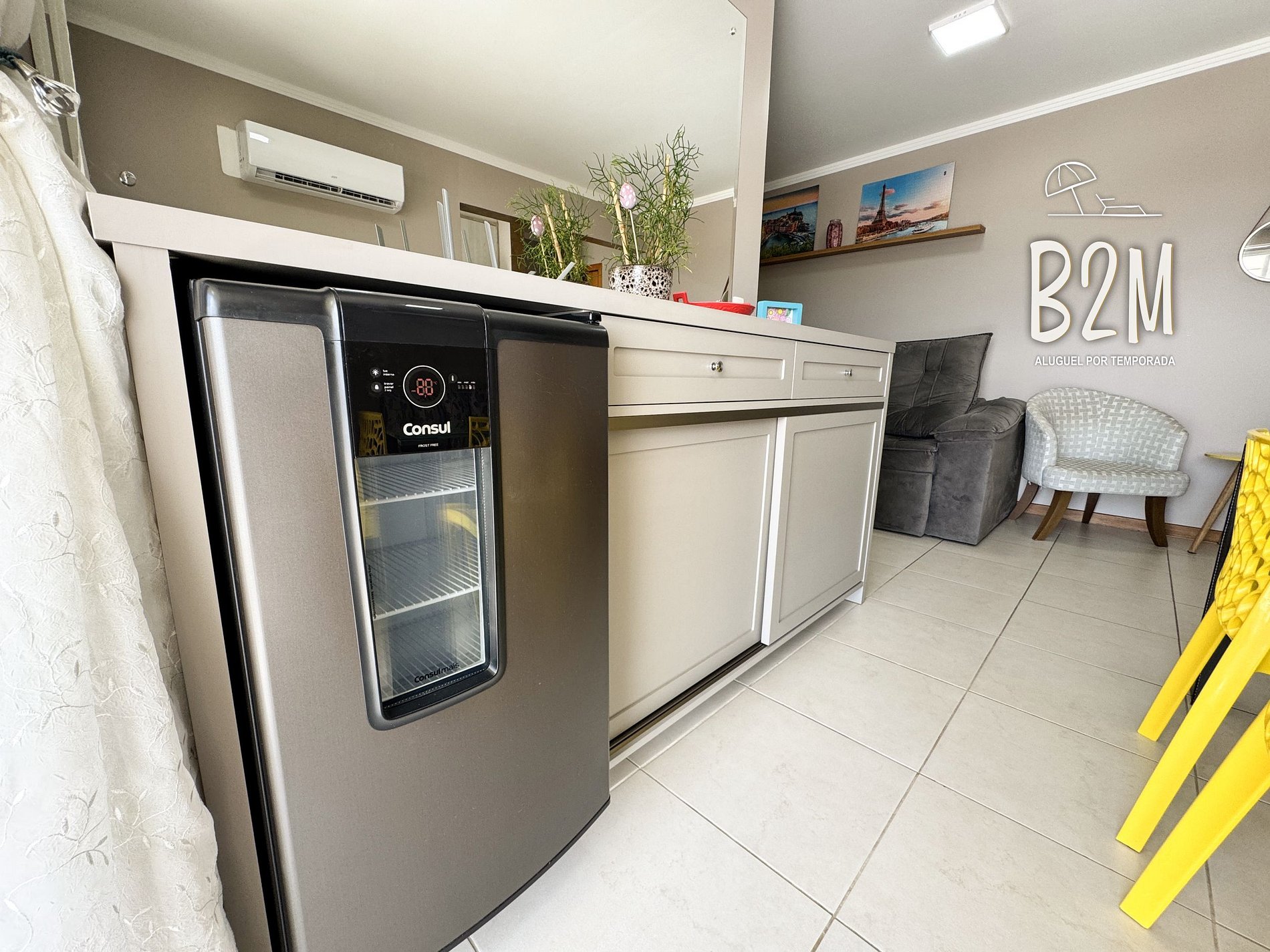 cervejeira, sofá retrátil, televisão, internet wifi, ar condicionado, mesa de jantar para 6 pessoas