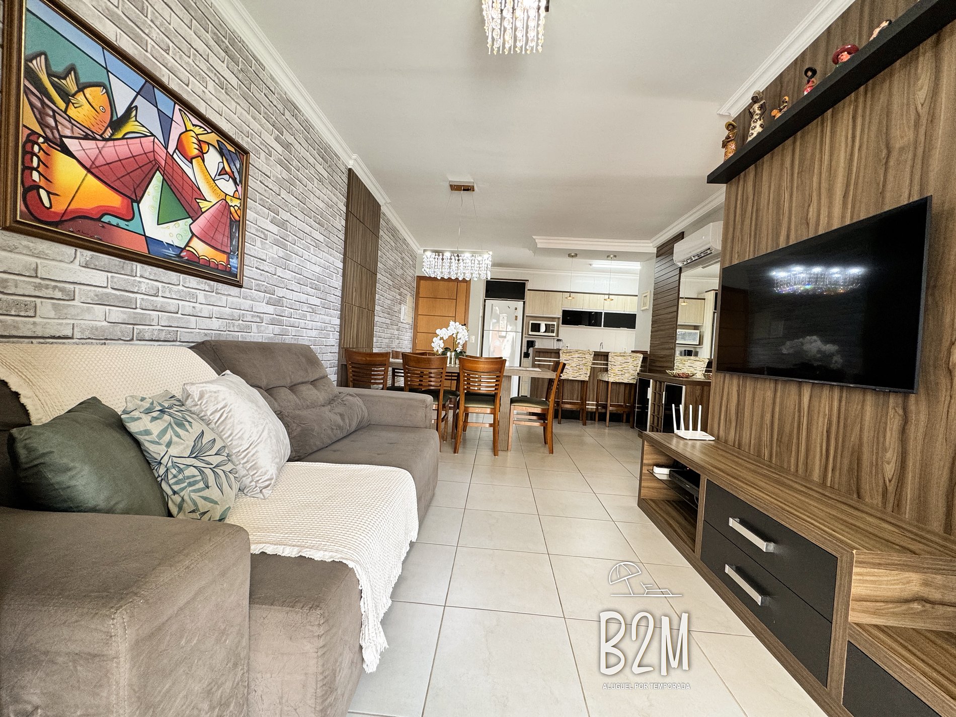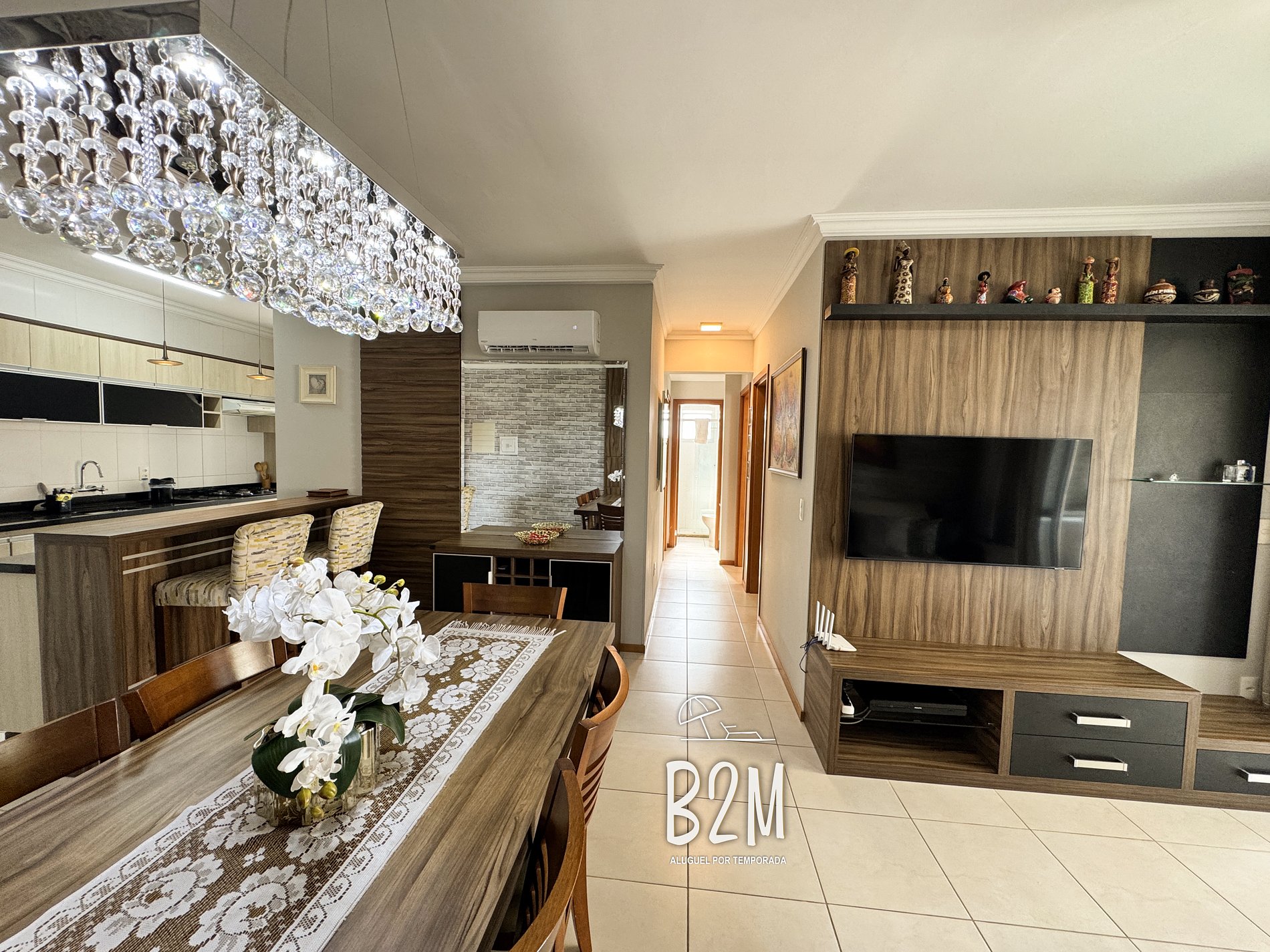 sofá retrátil, televisão, internet wifi, ar condicionado, mesa de jantar para 7 pessoas