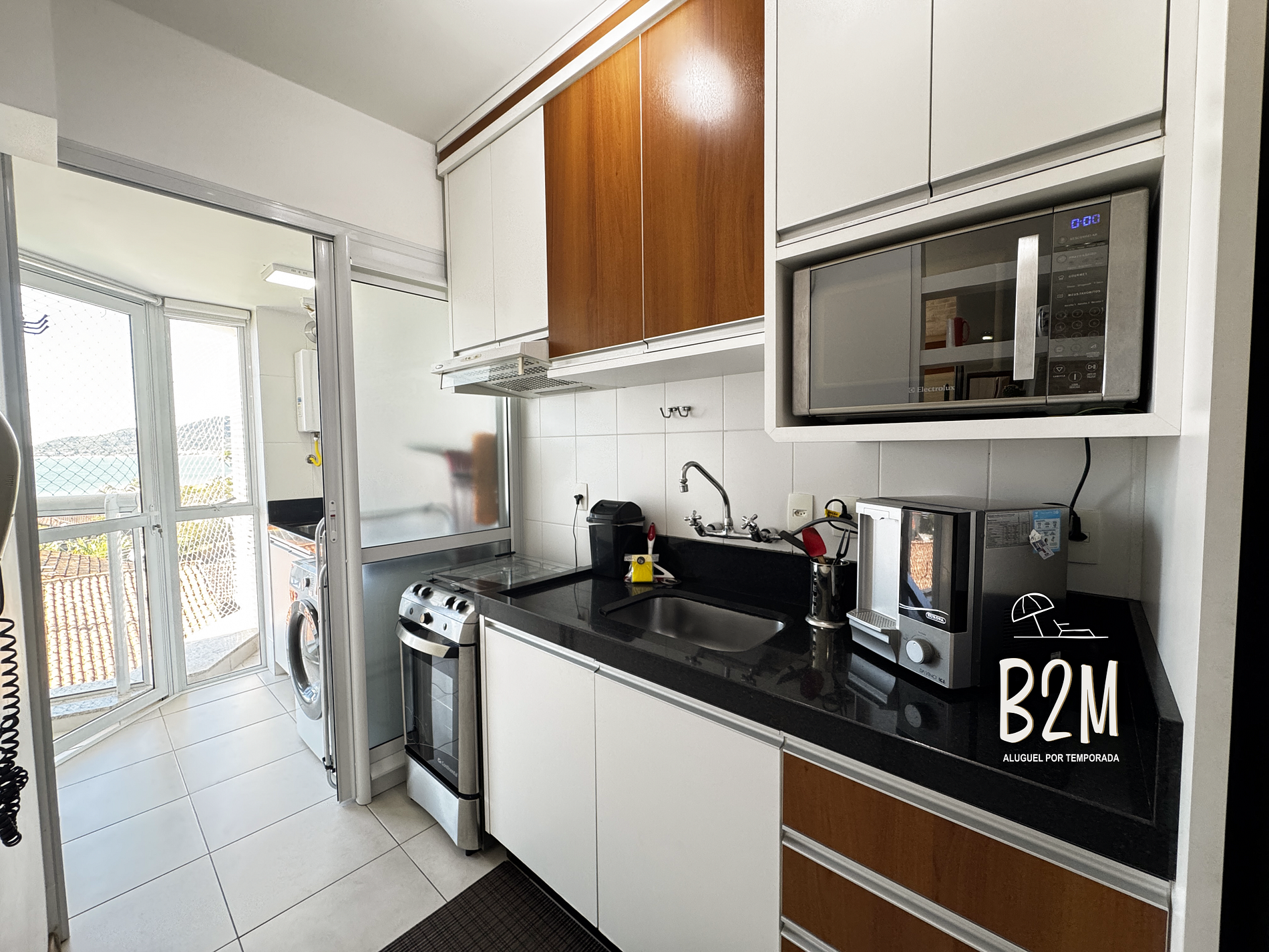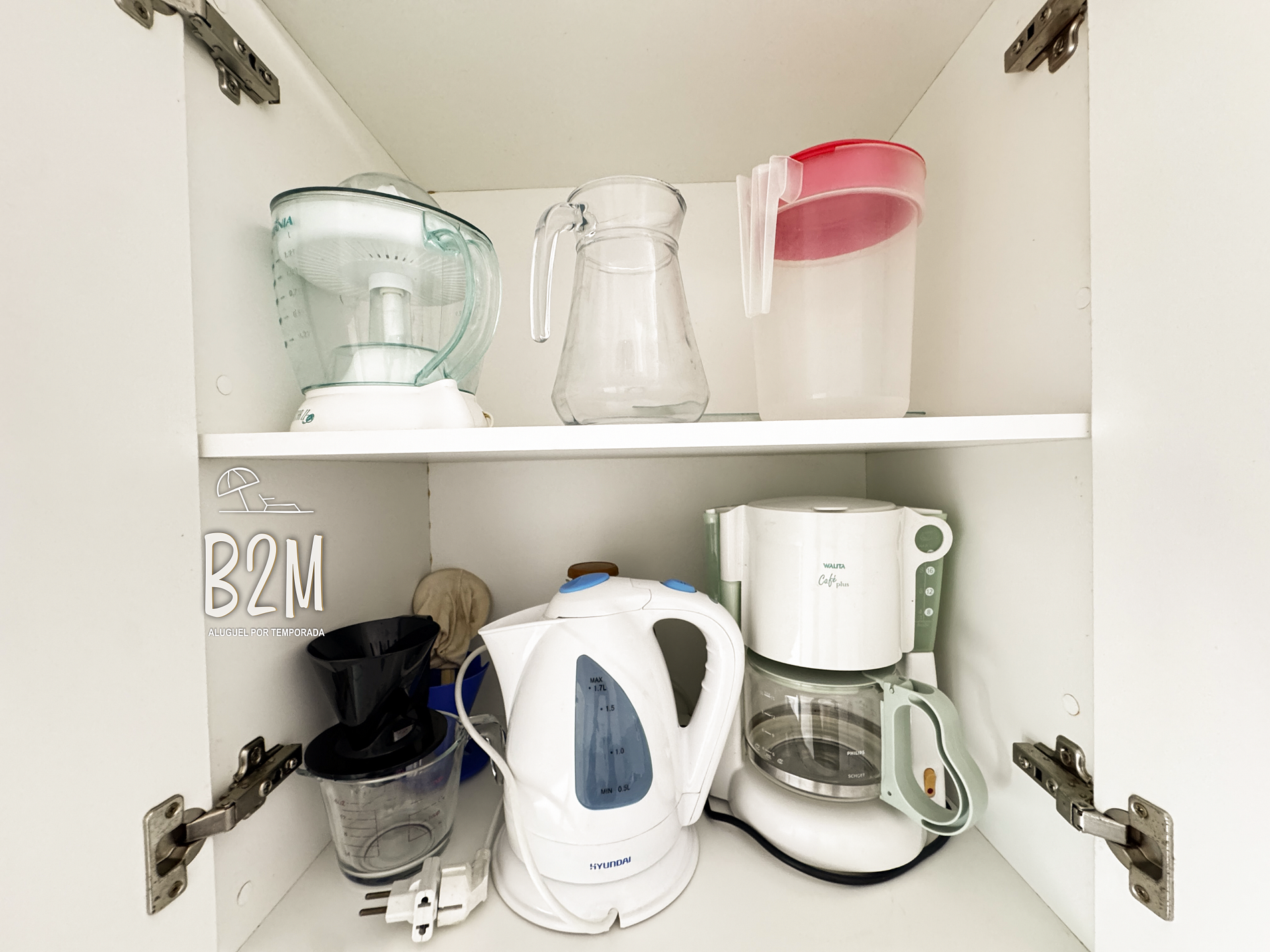 geladeira duplex, microondas, airfryer, bebedouro, sanduicheira, fogão, cafeteira, panelas, talheres e utensílios para o preparado de deliciosas refeições.