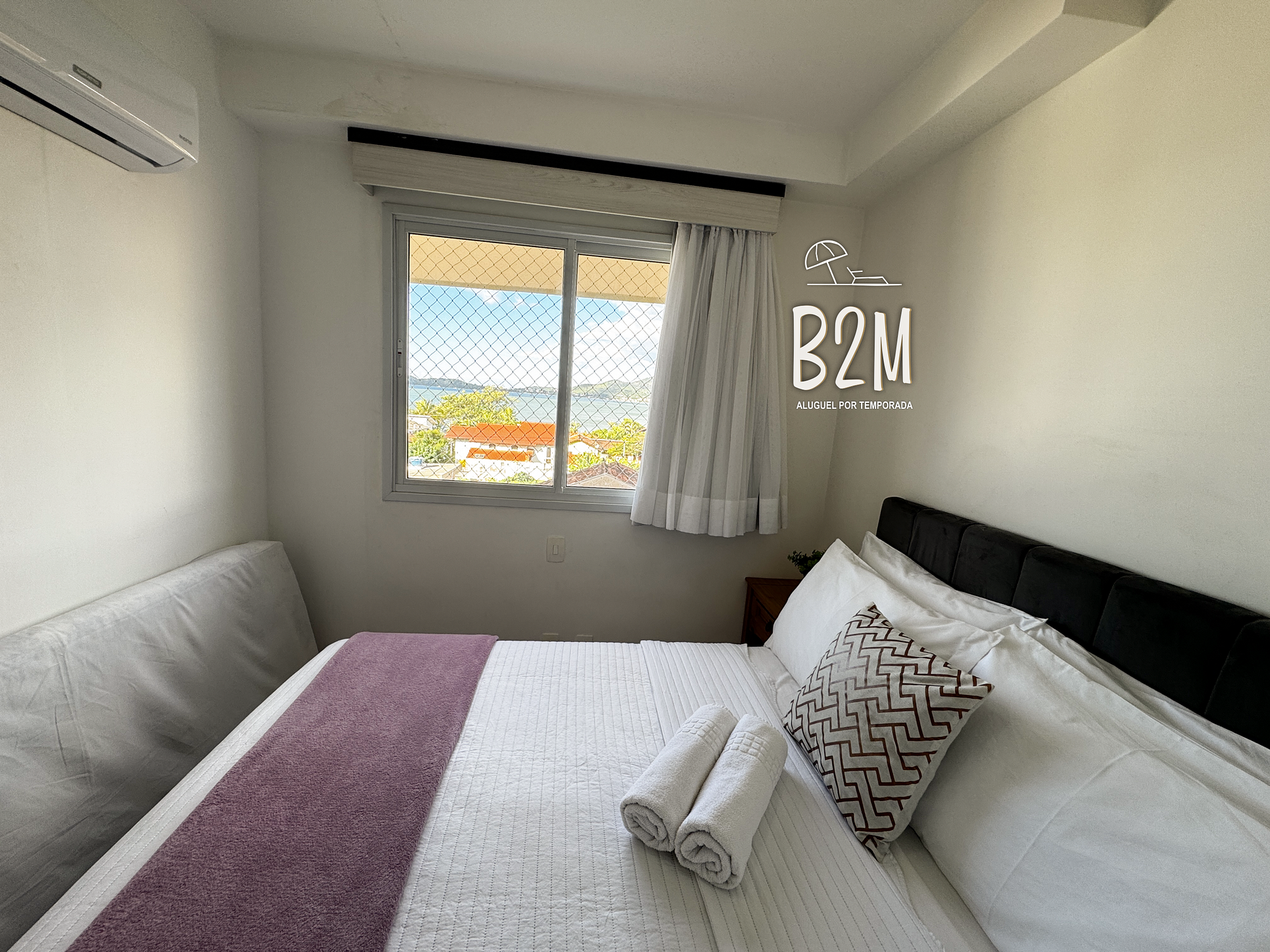 1 cama de casal, 1 colchão de solteiro extra, ar condicionado, armário, cortina com blackout