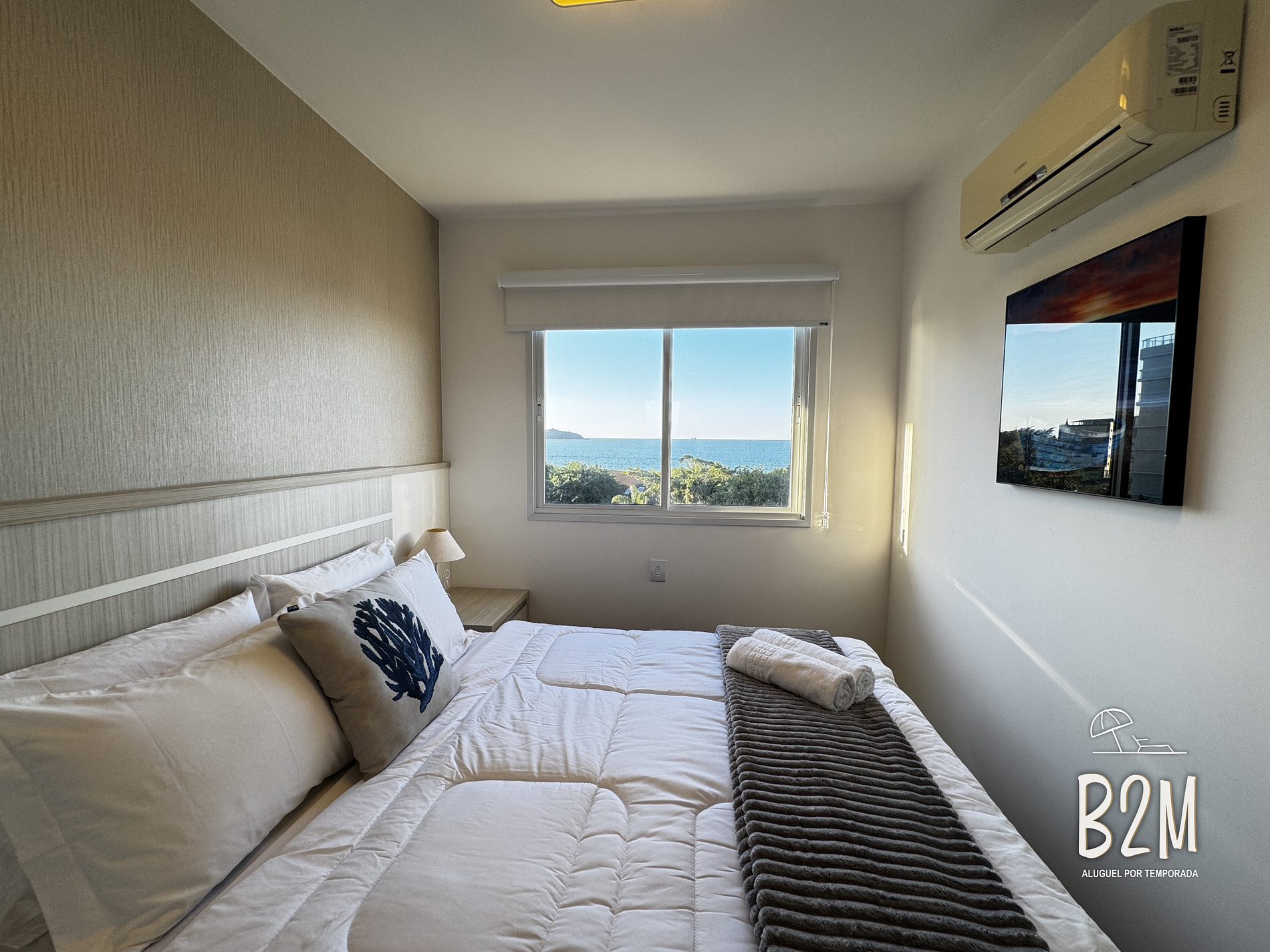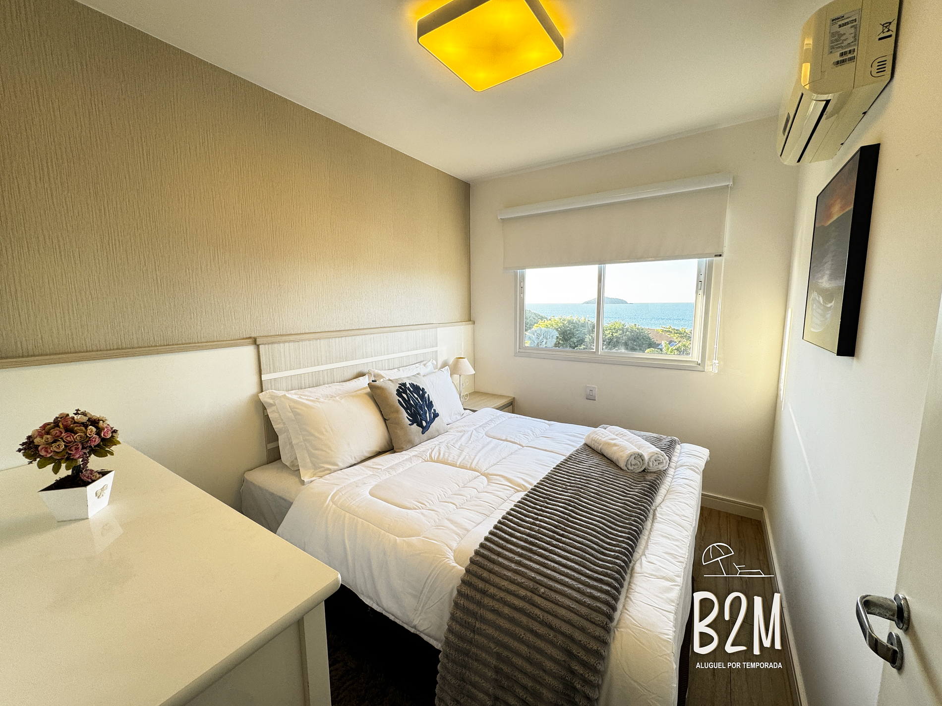 janela vista mar, 1 cama queen, ar condicionado, cômoda