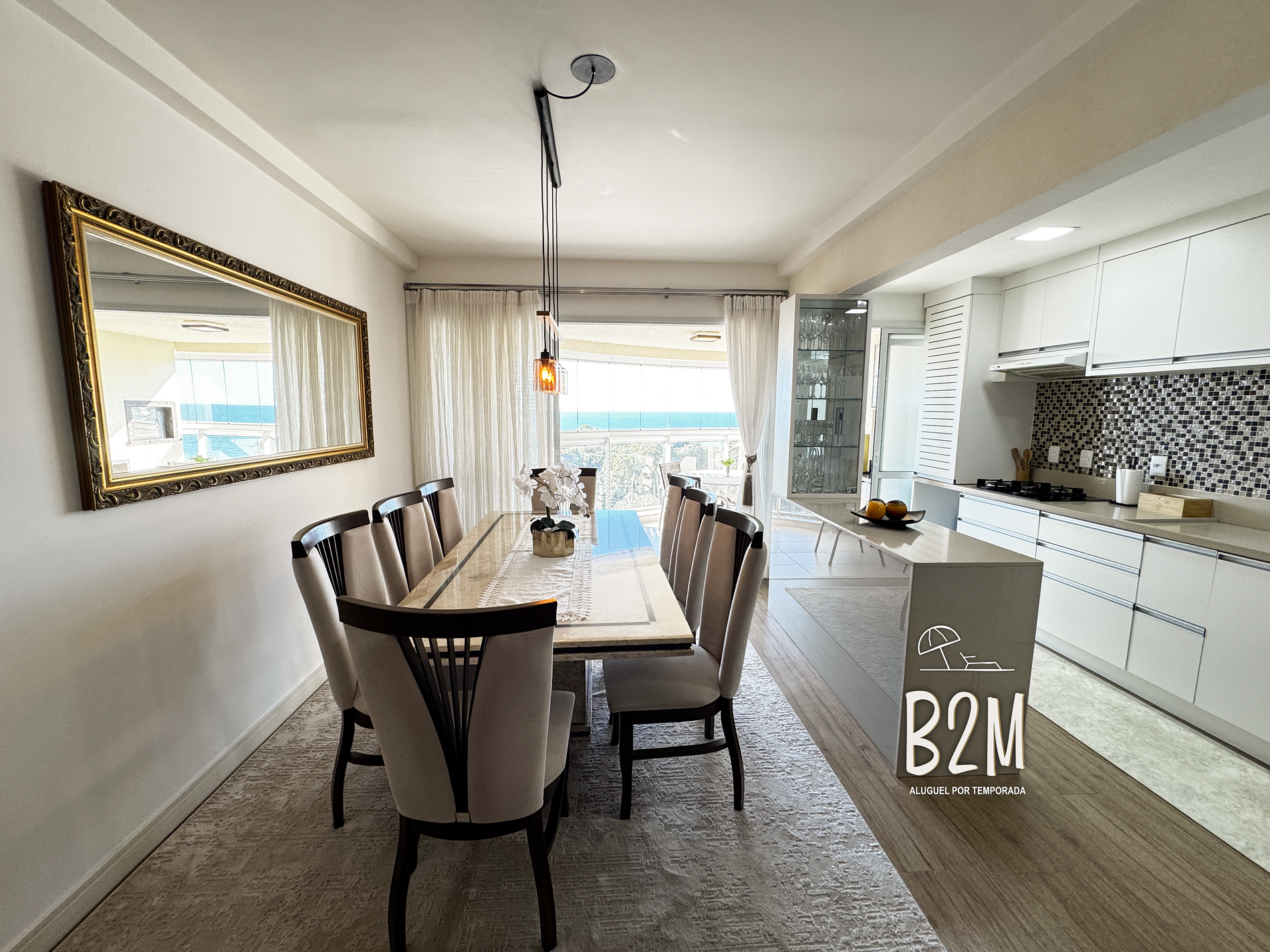 sofá retrátil, smart tv, ar condicionado, adega, internet wifi, mesa de jantar para 8 pessoas