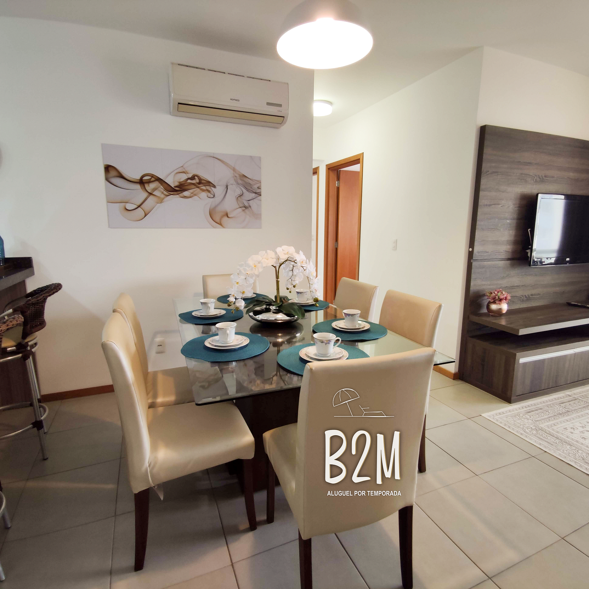 sofá confortável, televisão, internet wifi, ar condicionado, mesa de jantar para 6 pessoas