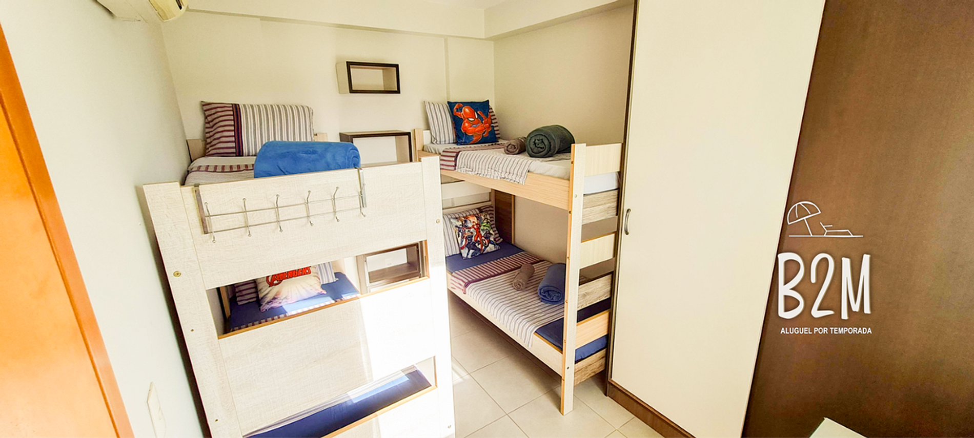 4 camas de solteiro, ar condicionado, armário
