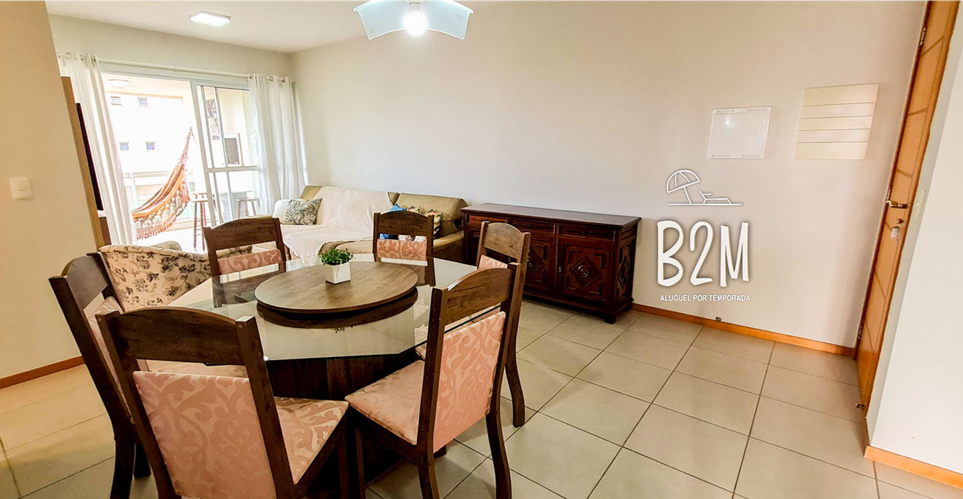 sofá retrátil, poltrona, televisão, internet wifi, mesa de jantar para 6 pessoas