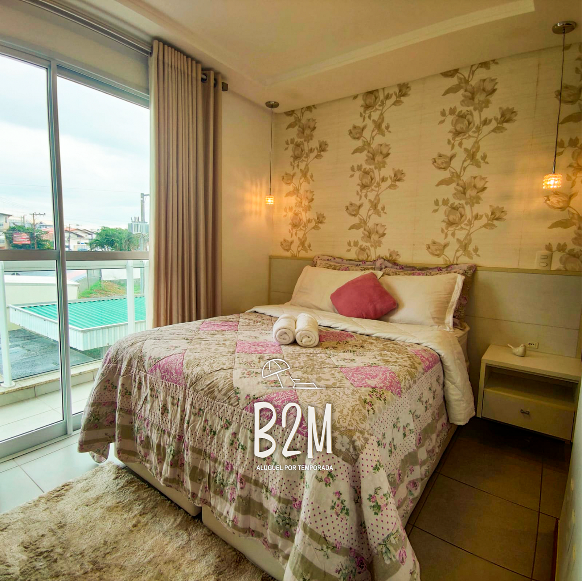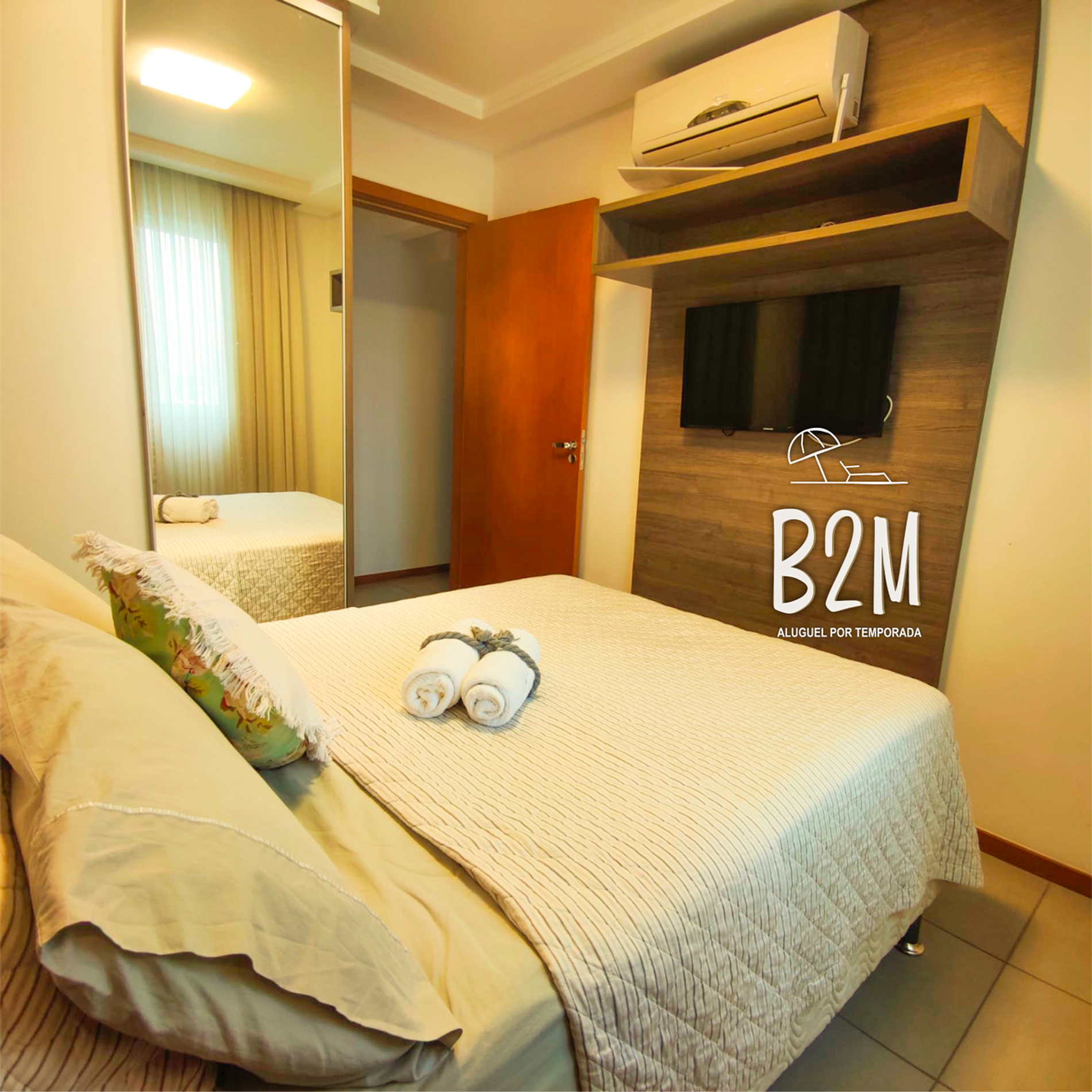 1 cama de casal, ar condicionado, televisão, luz para leitura, criado mudo, cortina com blackout, decoração aconchegante, armário