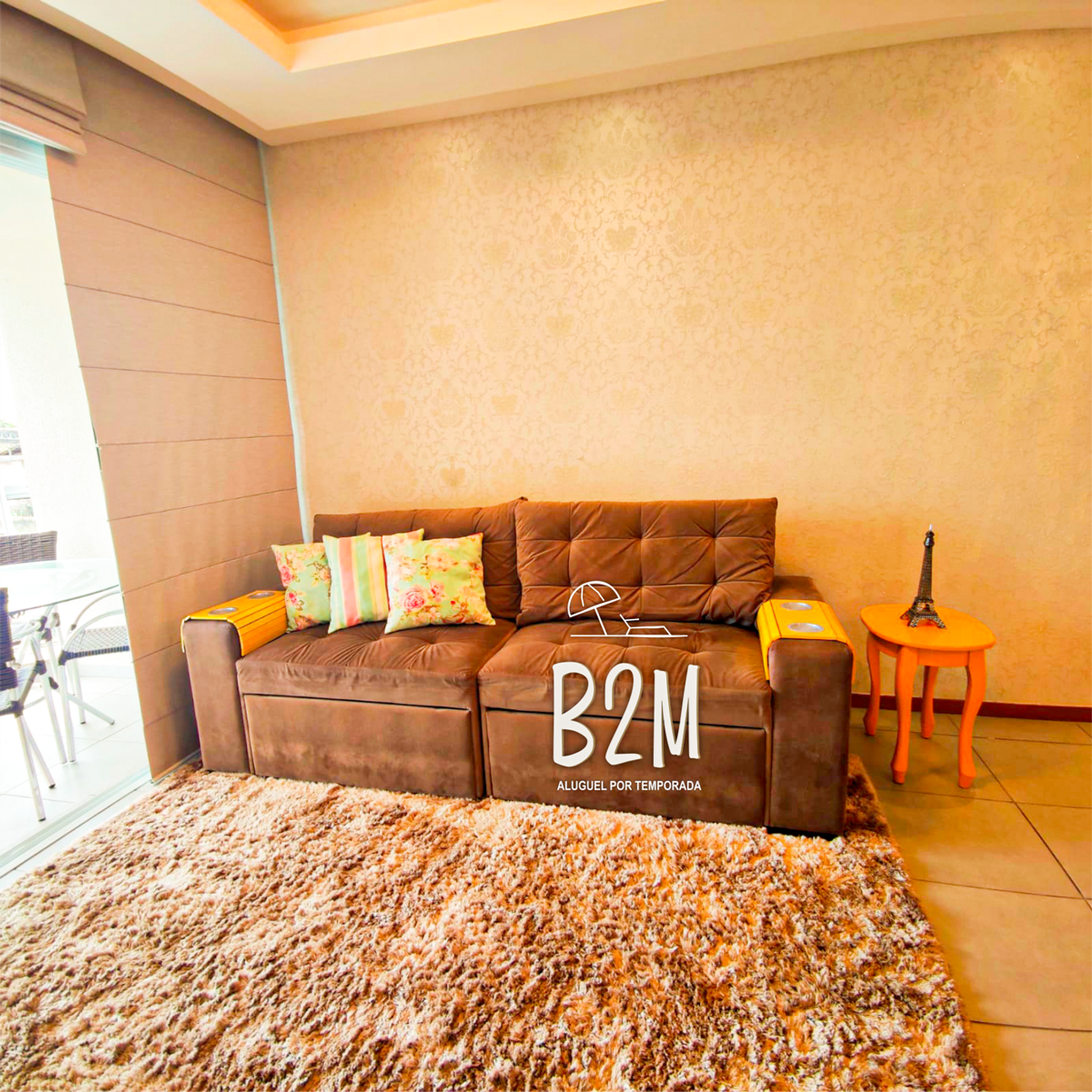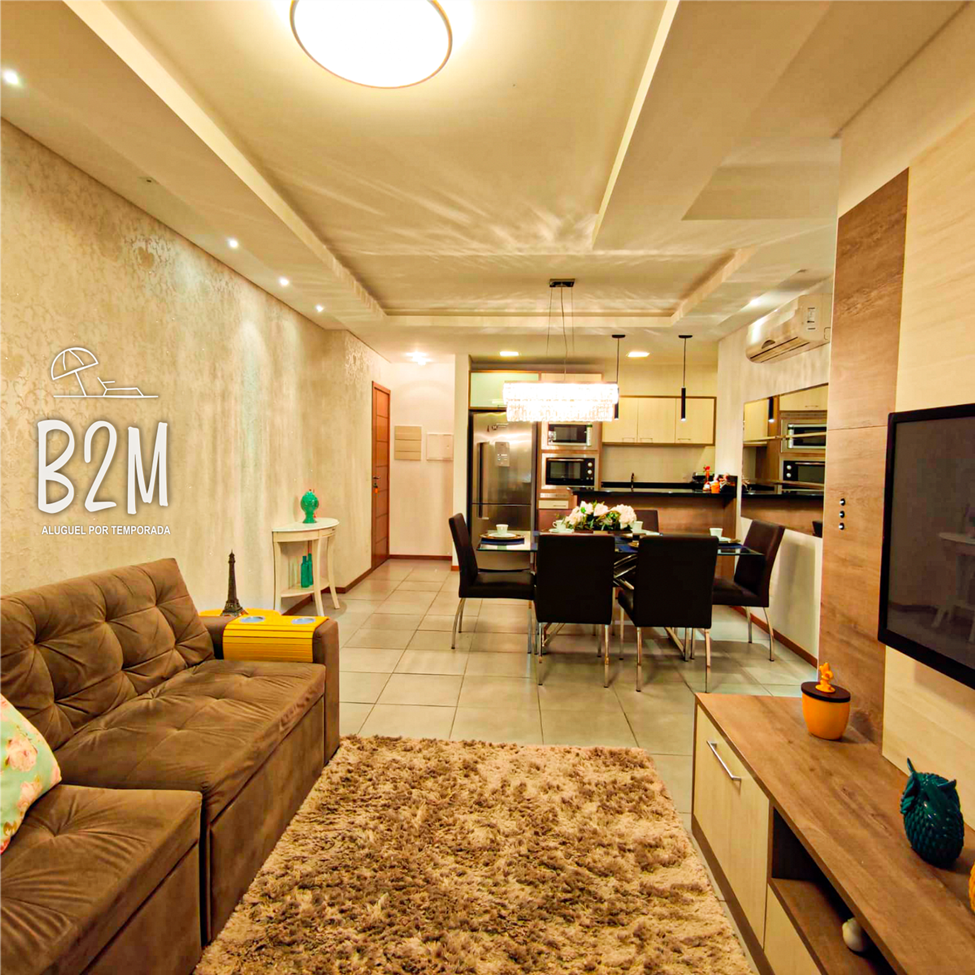 Sofá retrátil, decoração com papel de parede alto relevo, televisão, internet wifi, ar condicionado, mesa de jantar para 6 pessoas