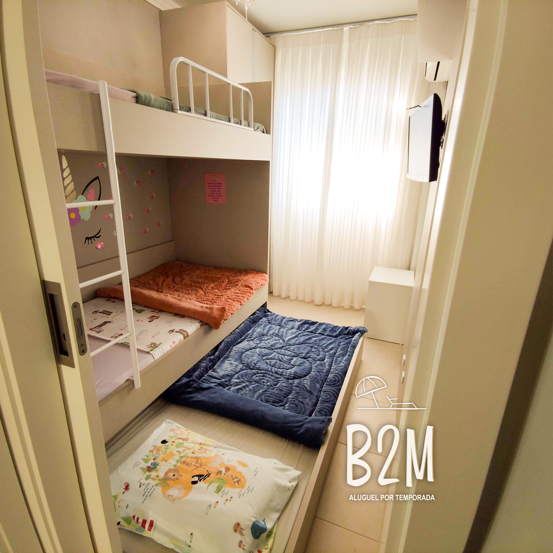 3 camas de solteiro, ar condicionado, televisão, armário