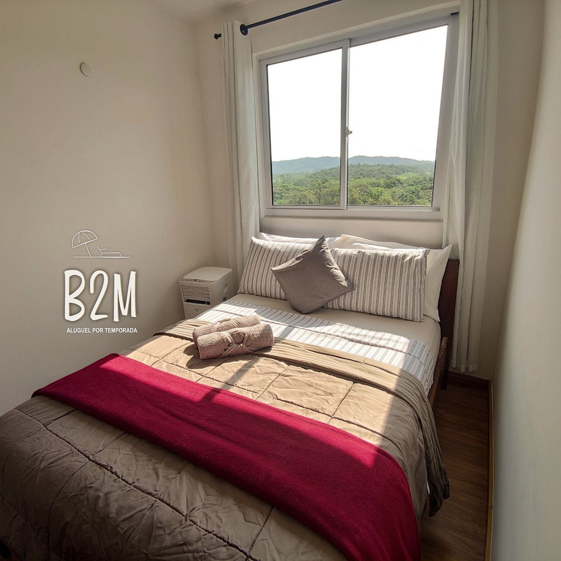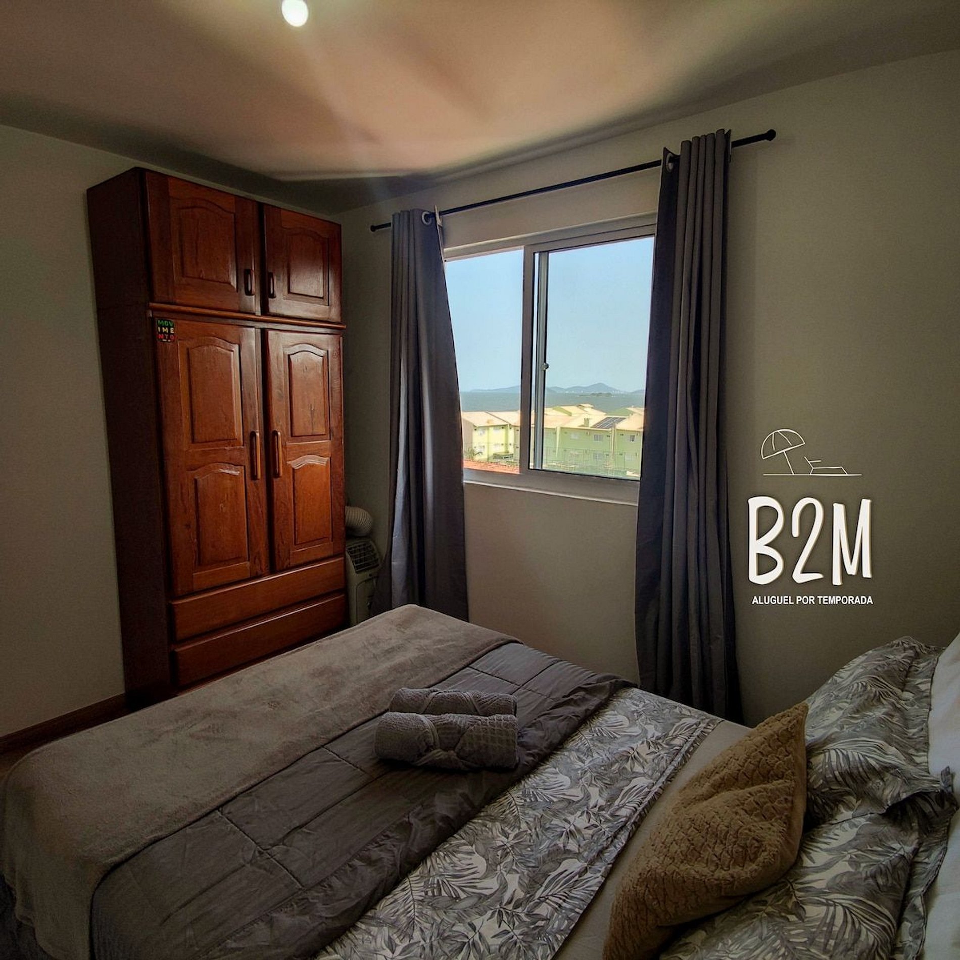 vista do mar, 1 cama de casal, ar condicionado portátil, armário, cortina com blackout
