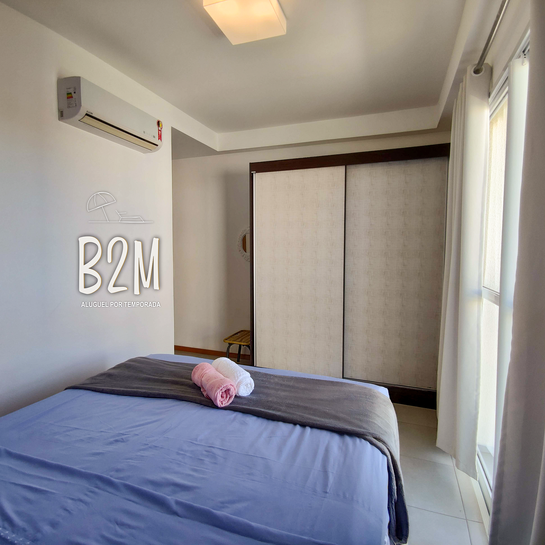 1cama de casal, ar condicionado, armário, cortina com blackout
