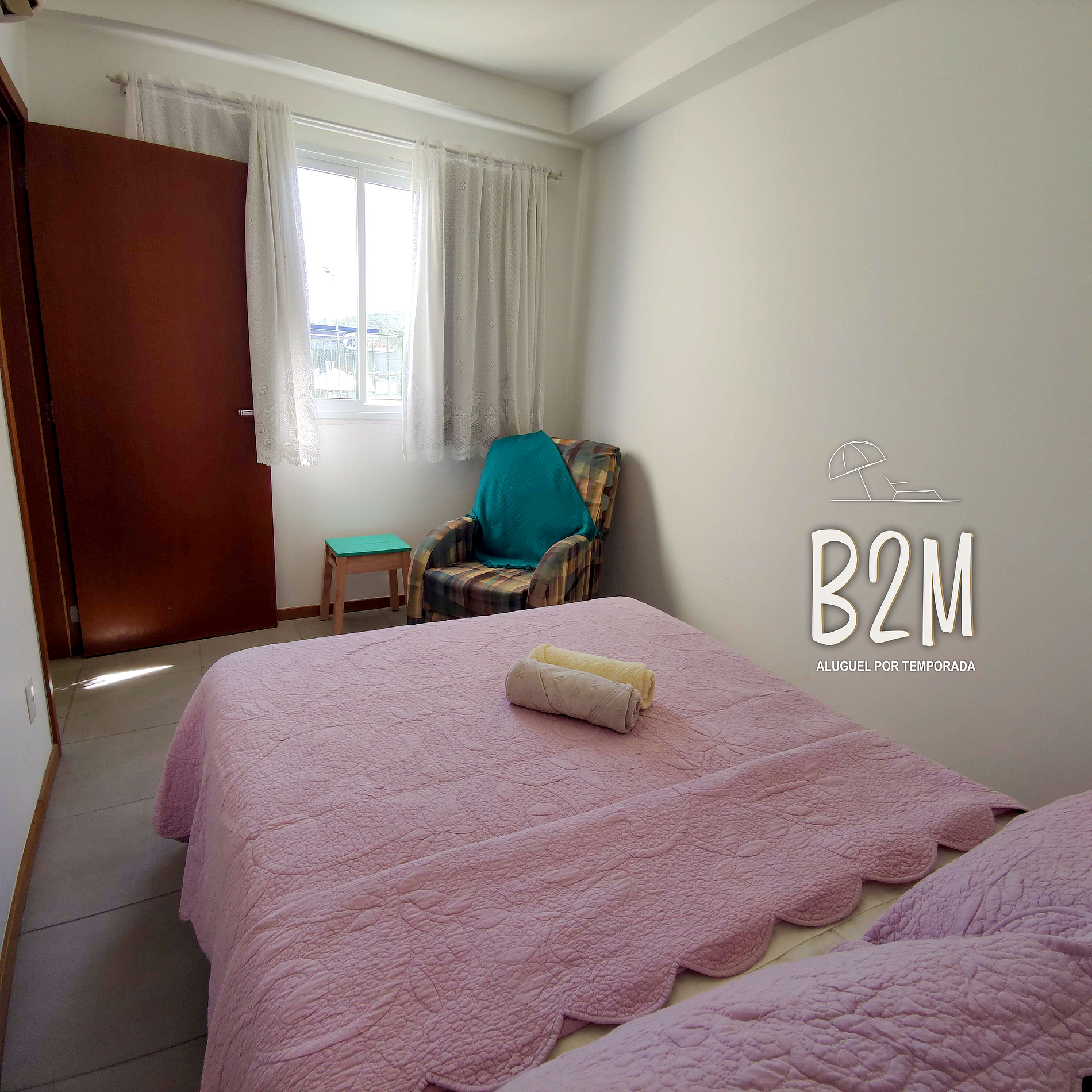 1 cama de casal, 1 colchão de solteiro extra, ar condicionado, armário, poltrona, cortina com blackout