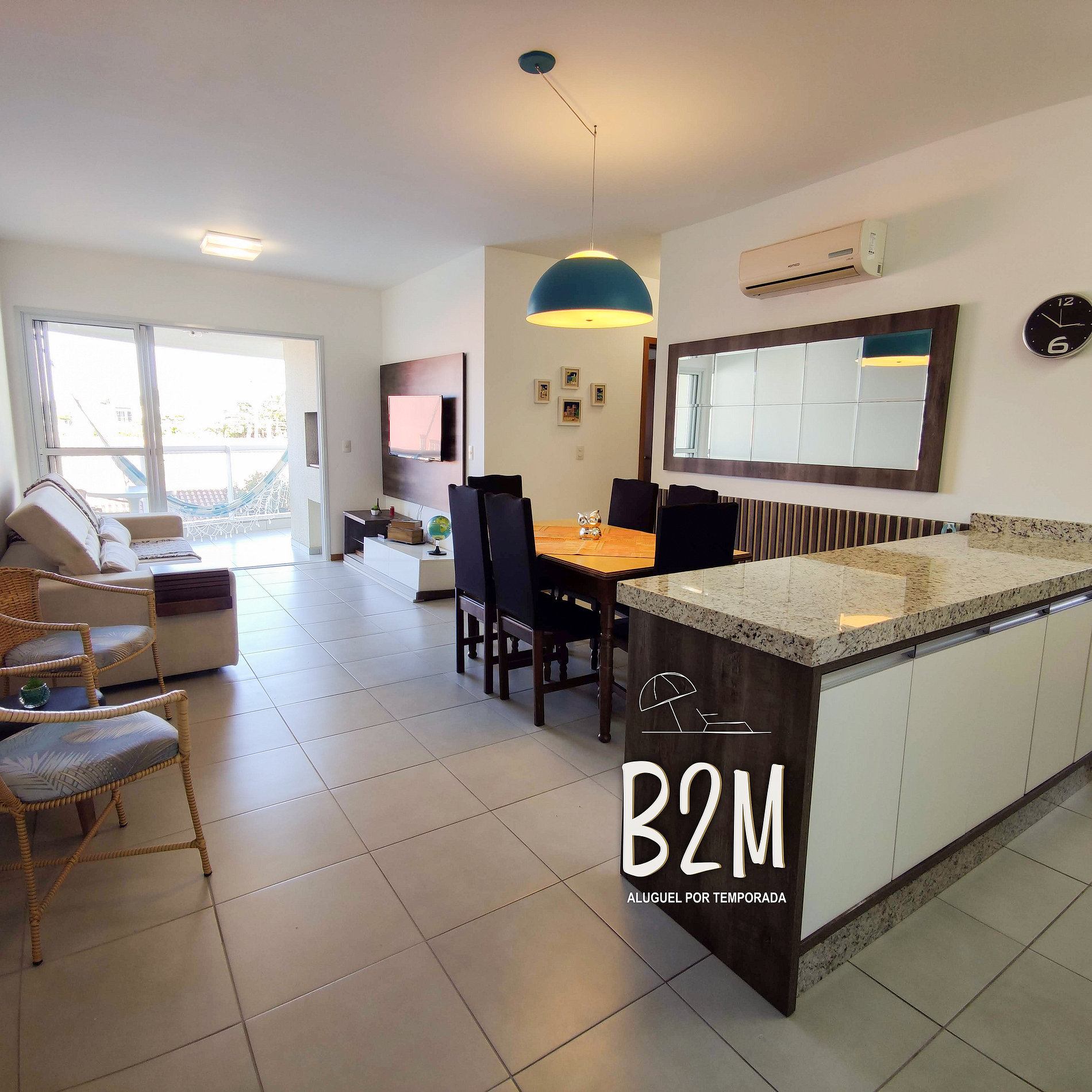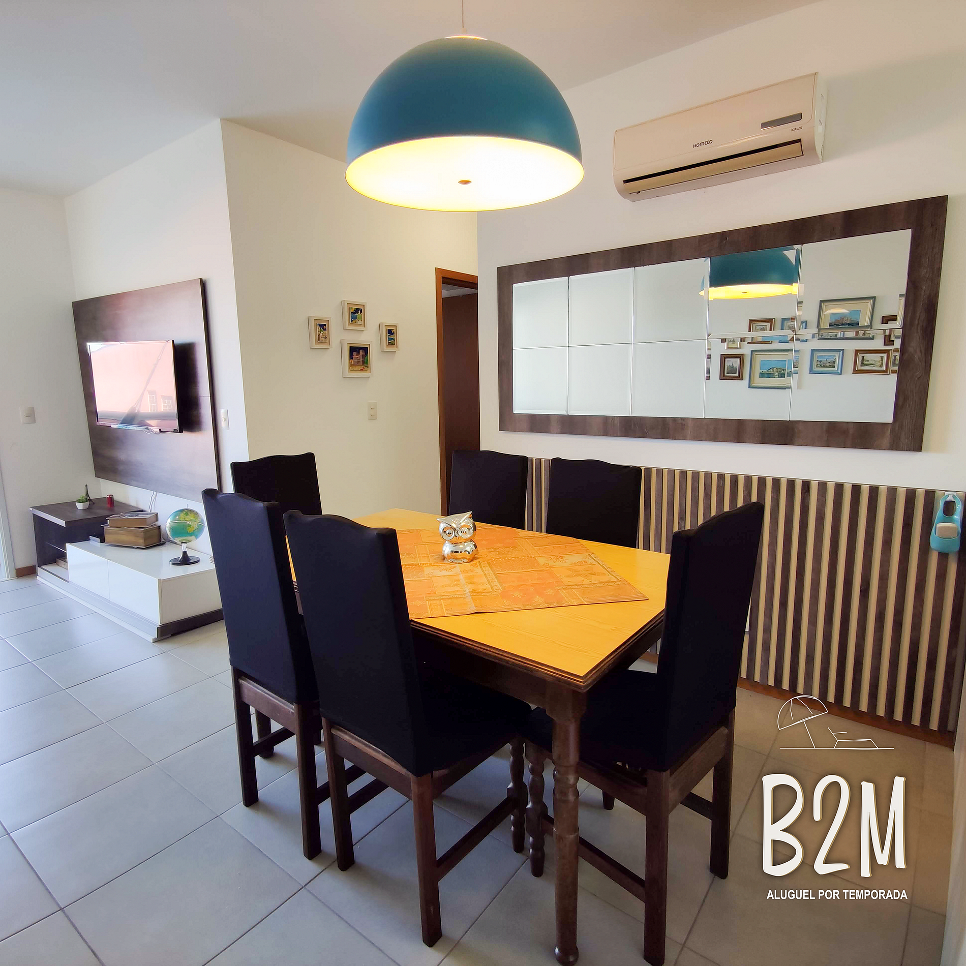 sofá retrátil, televisão, internet wifi, ar condicionado, mesa de jantar para 6 pessoas, buffet com taças