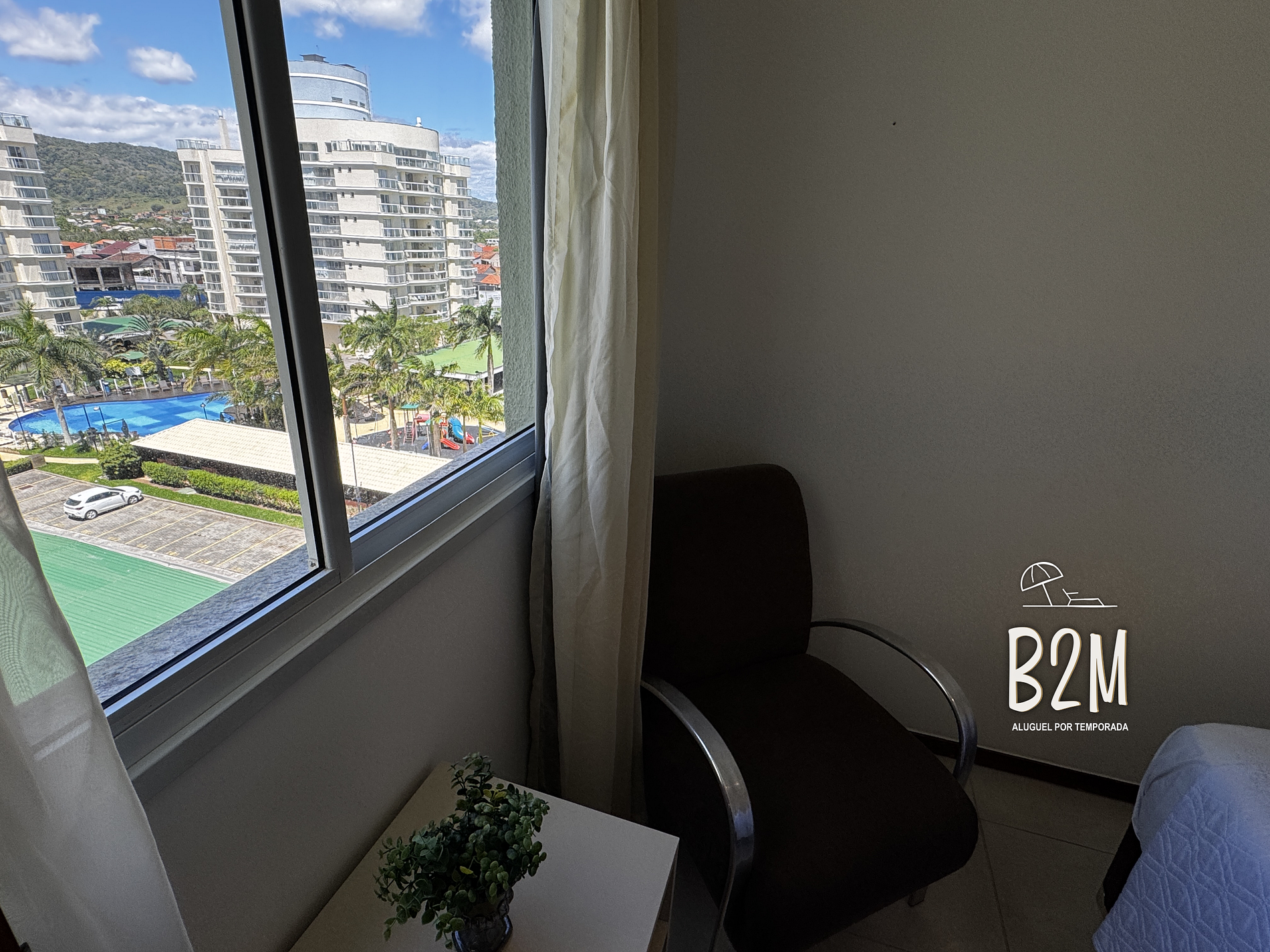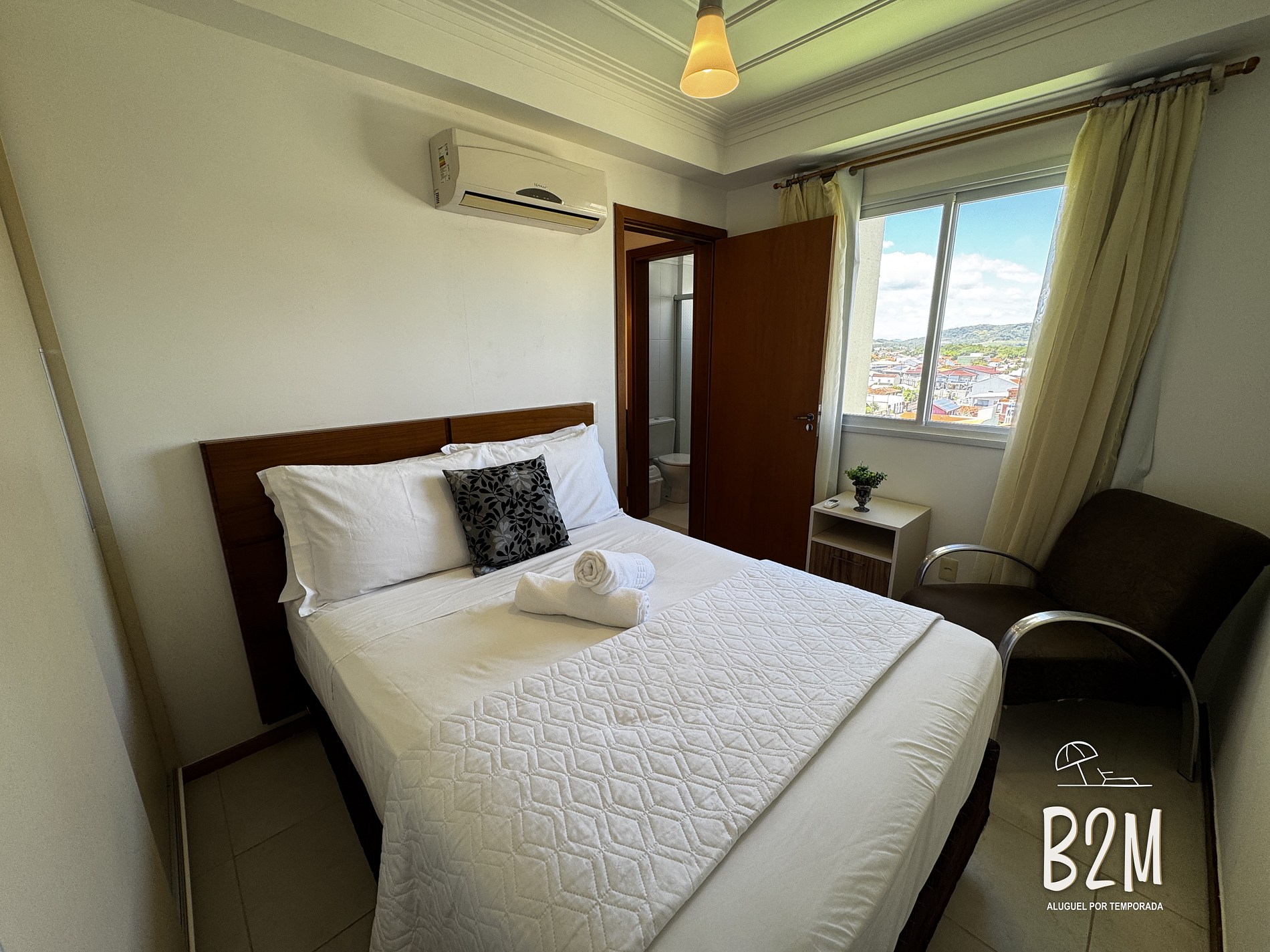 janela com vista da piscina, 1 cama de casal, ar condicionado, armário