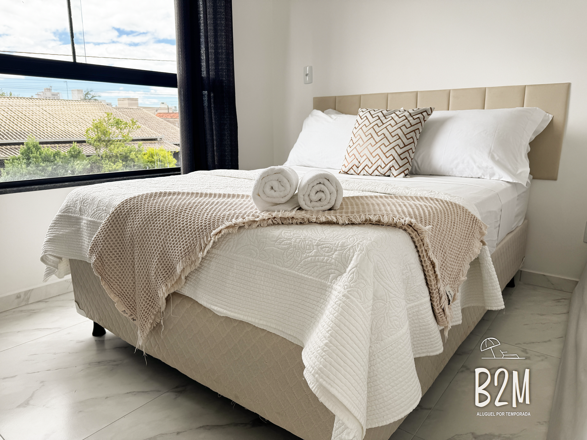 Esse charmoso apartamento recém construído fica a 600 metros da praia.