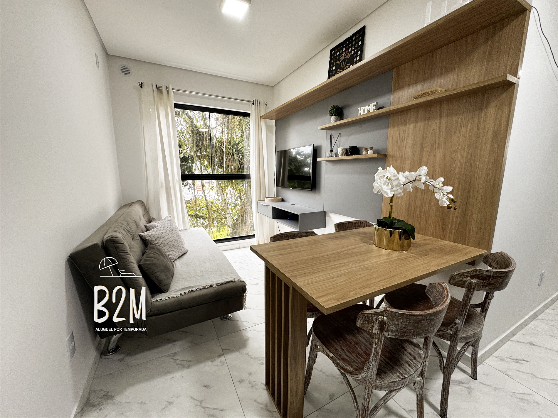 sofá cama, televisão, internet wifi, mesa para 4 pessoas,