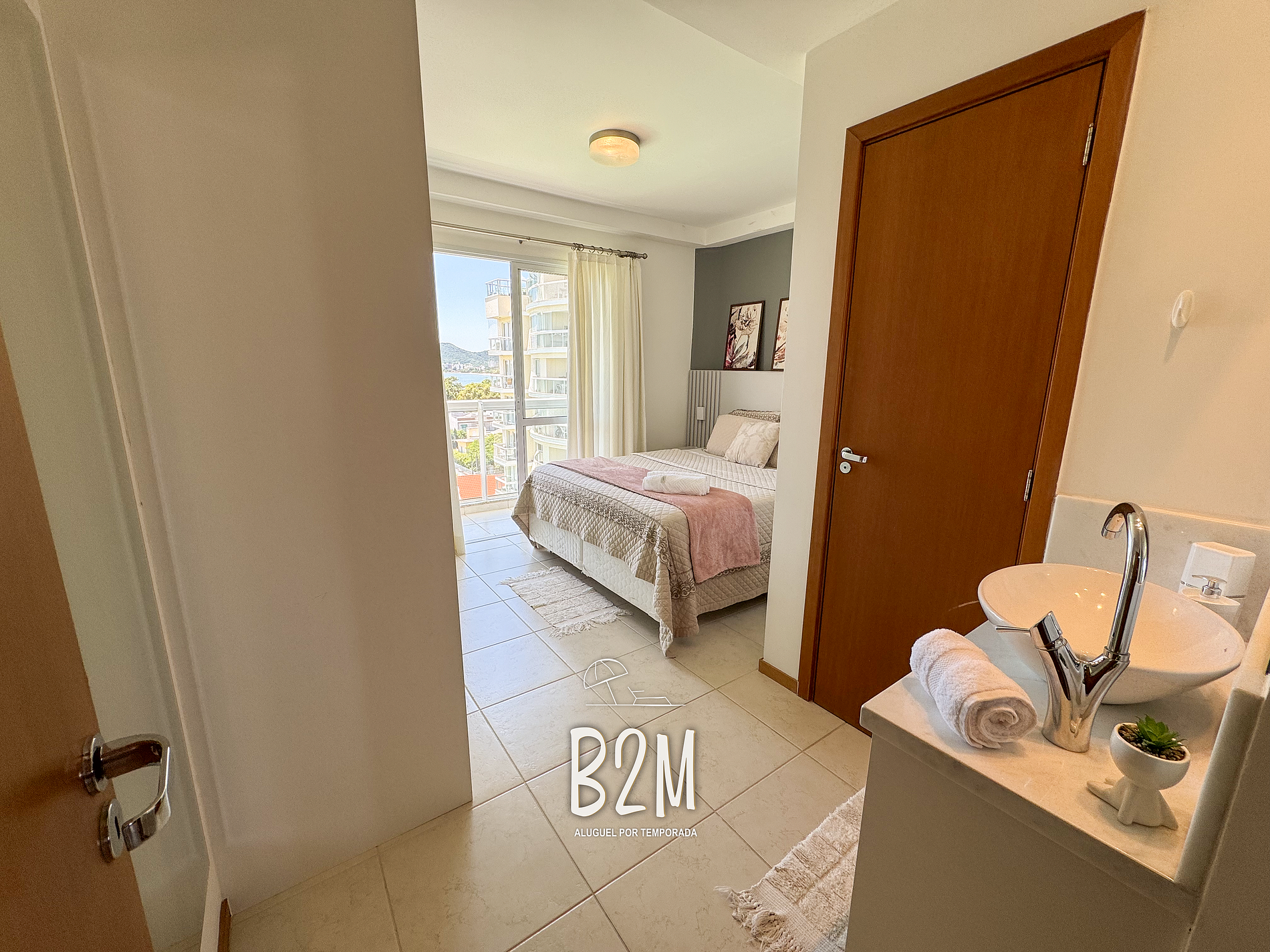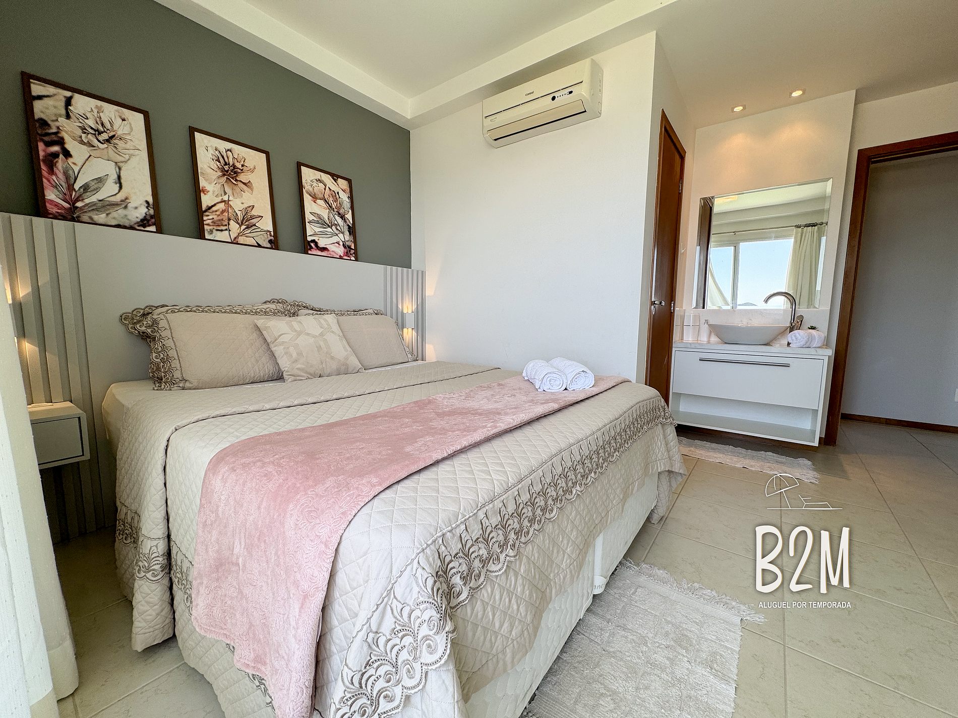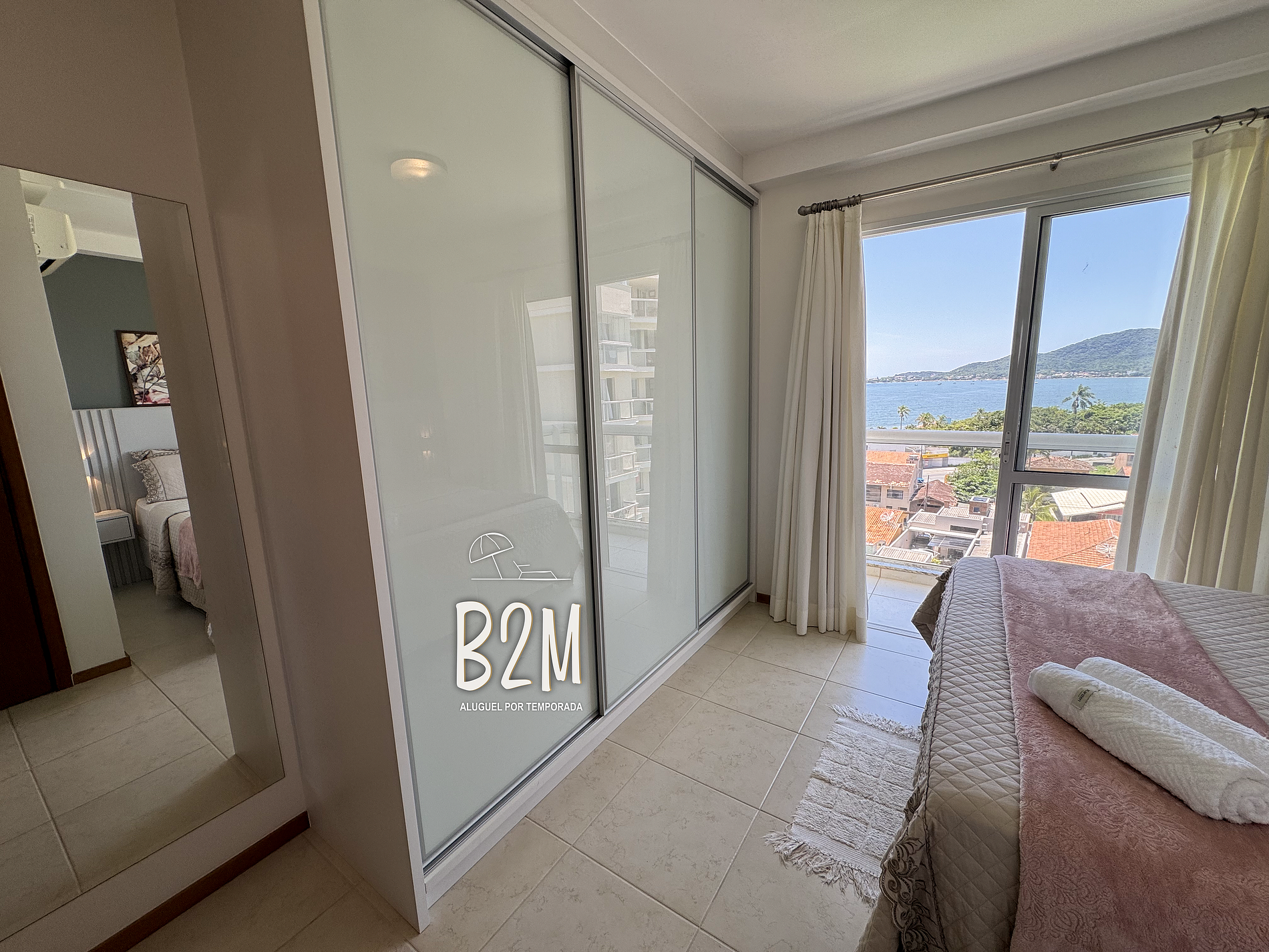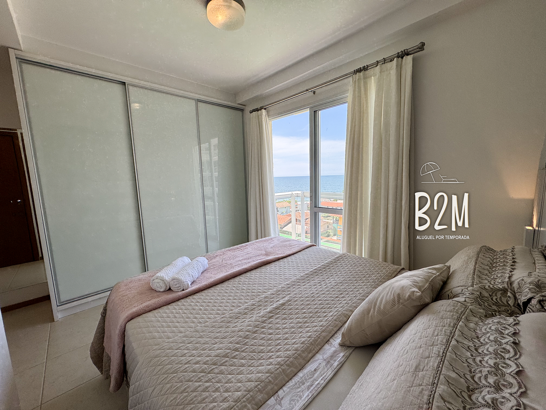 varanda com vista do mar, cama queen, ar condicionado, armário, banheiro privativo com água quente