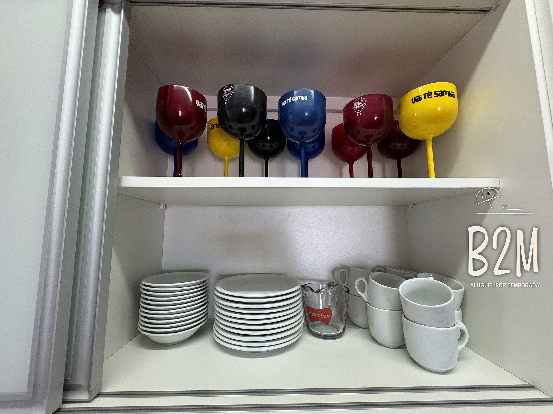 geladeira, microondas, fogão, forno, liquidificador, sanduicheira, panelas, talheres e utensílios para o preparado de refeições