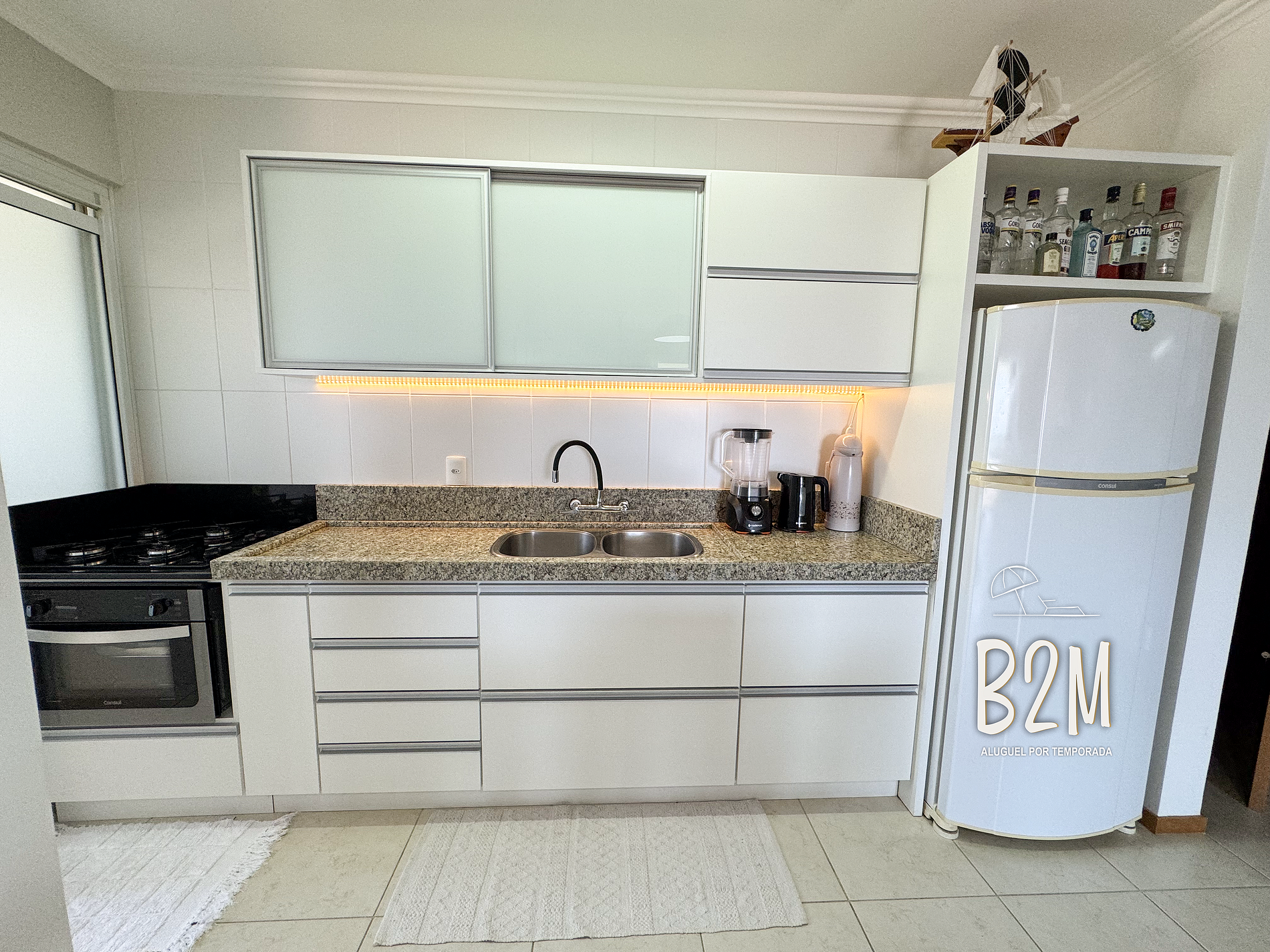 vista do mar, churrasqueira, pia com bancada, mesa com 4 cadeiras