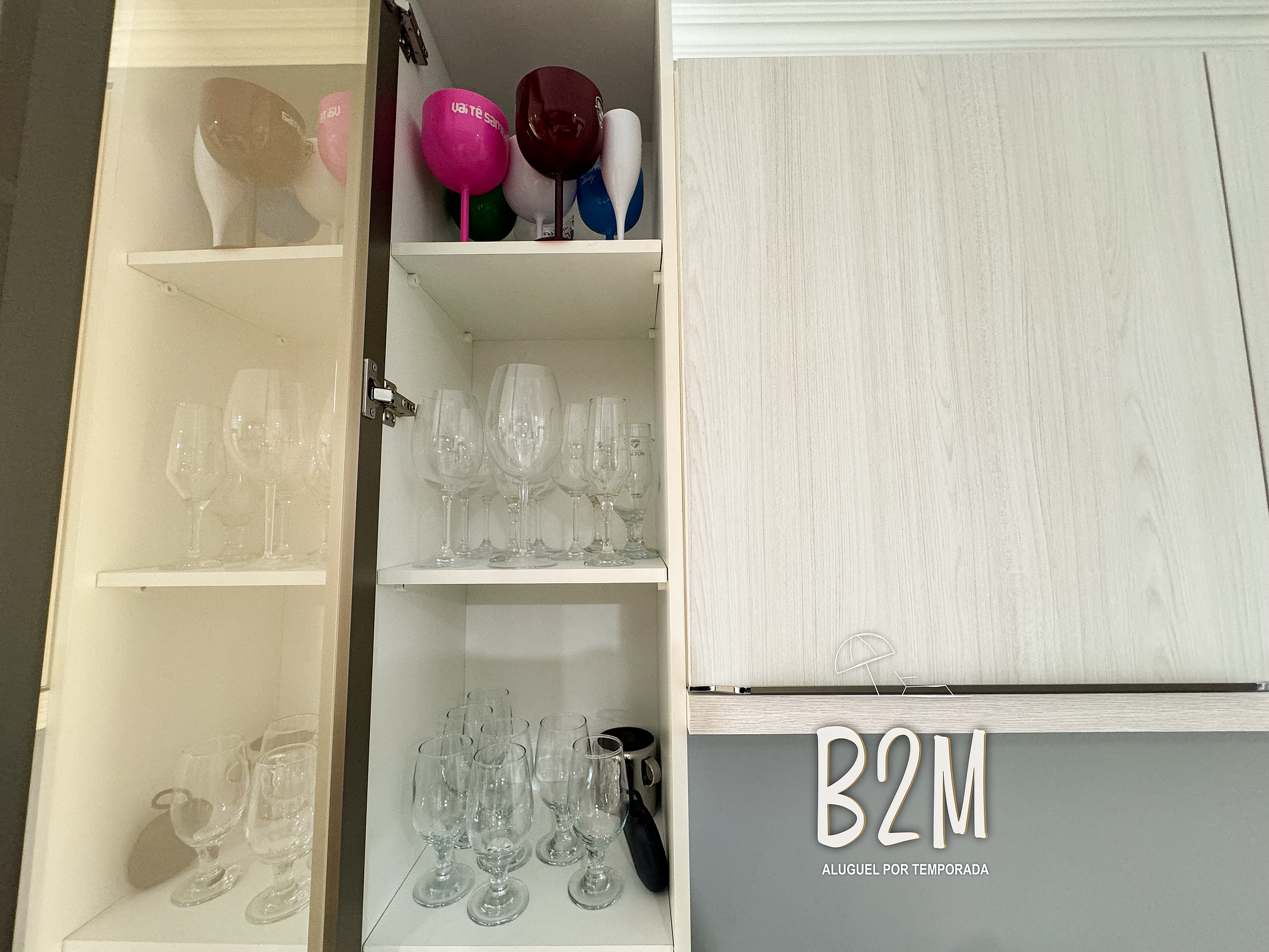 sofá retrátil, poltrona, televisão, internet wifi, ar condicionado, mesa de jantar para 8 pessoas, buffet com taças