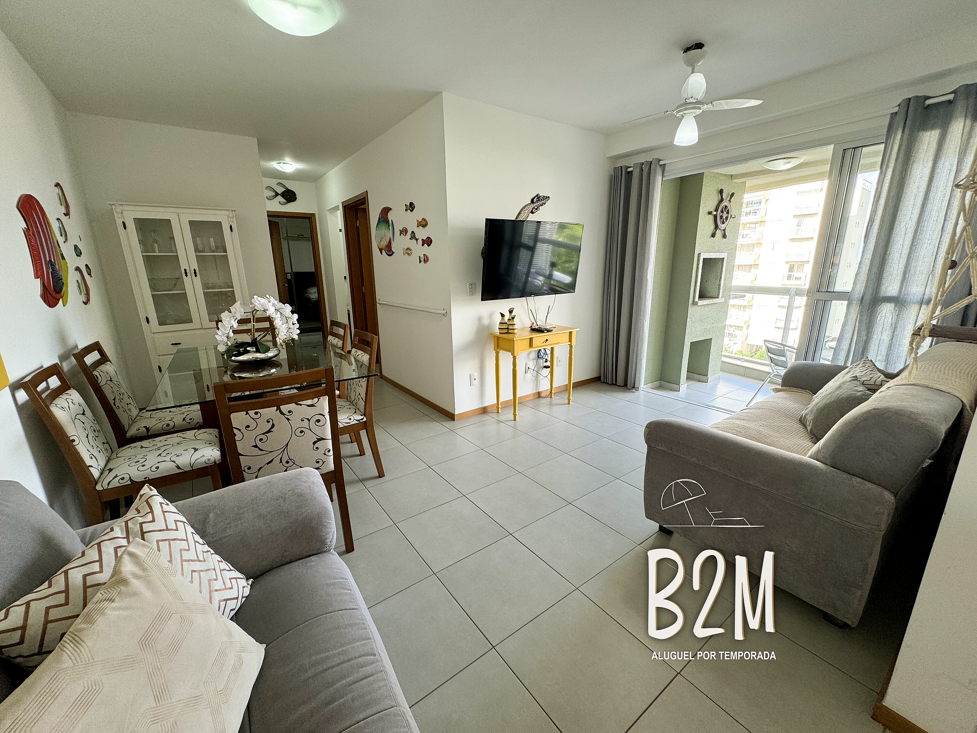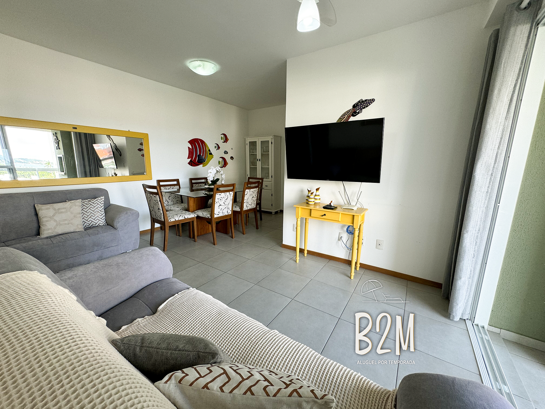 sofá, televisão, internet wifi, ventilador, mesa de jantar para 6 pessoas