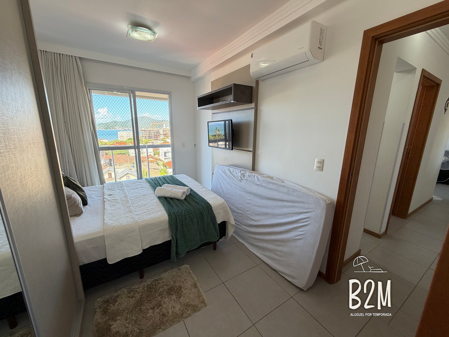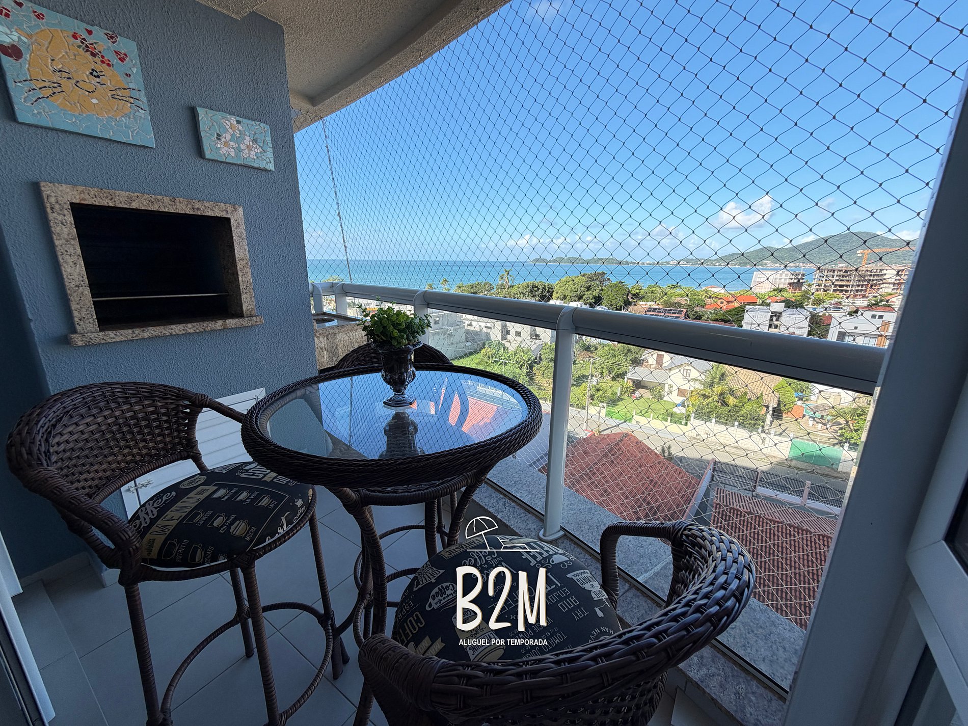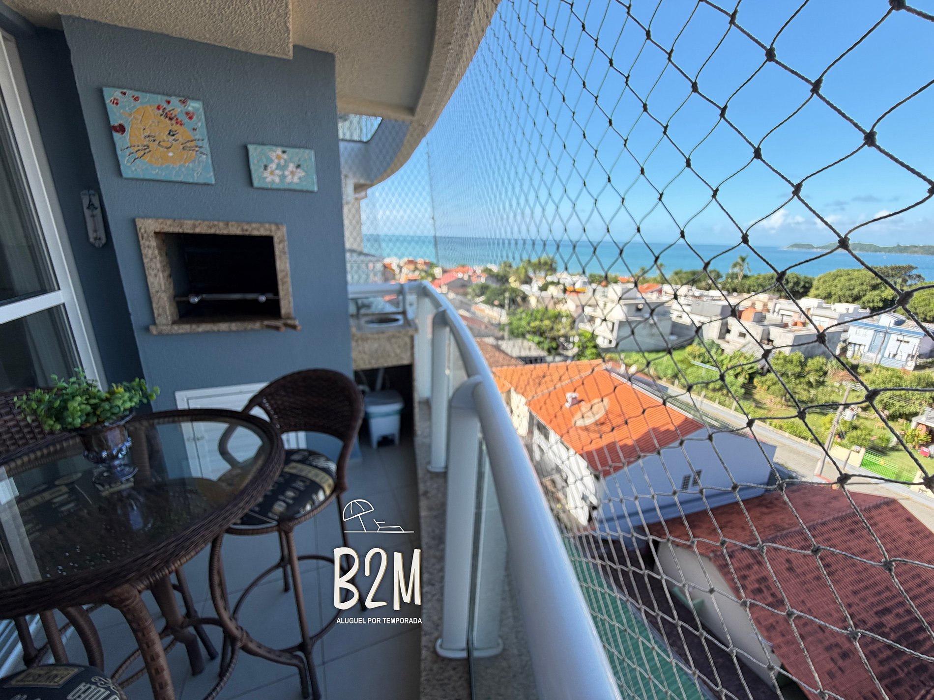 Esse apartamento possui tela de proteção nas janelas e sacadas e uma vista incrível do ma.