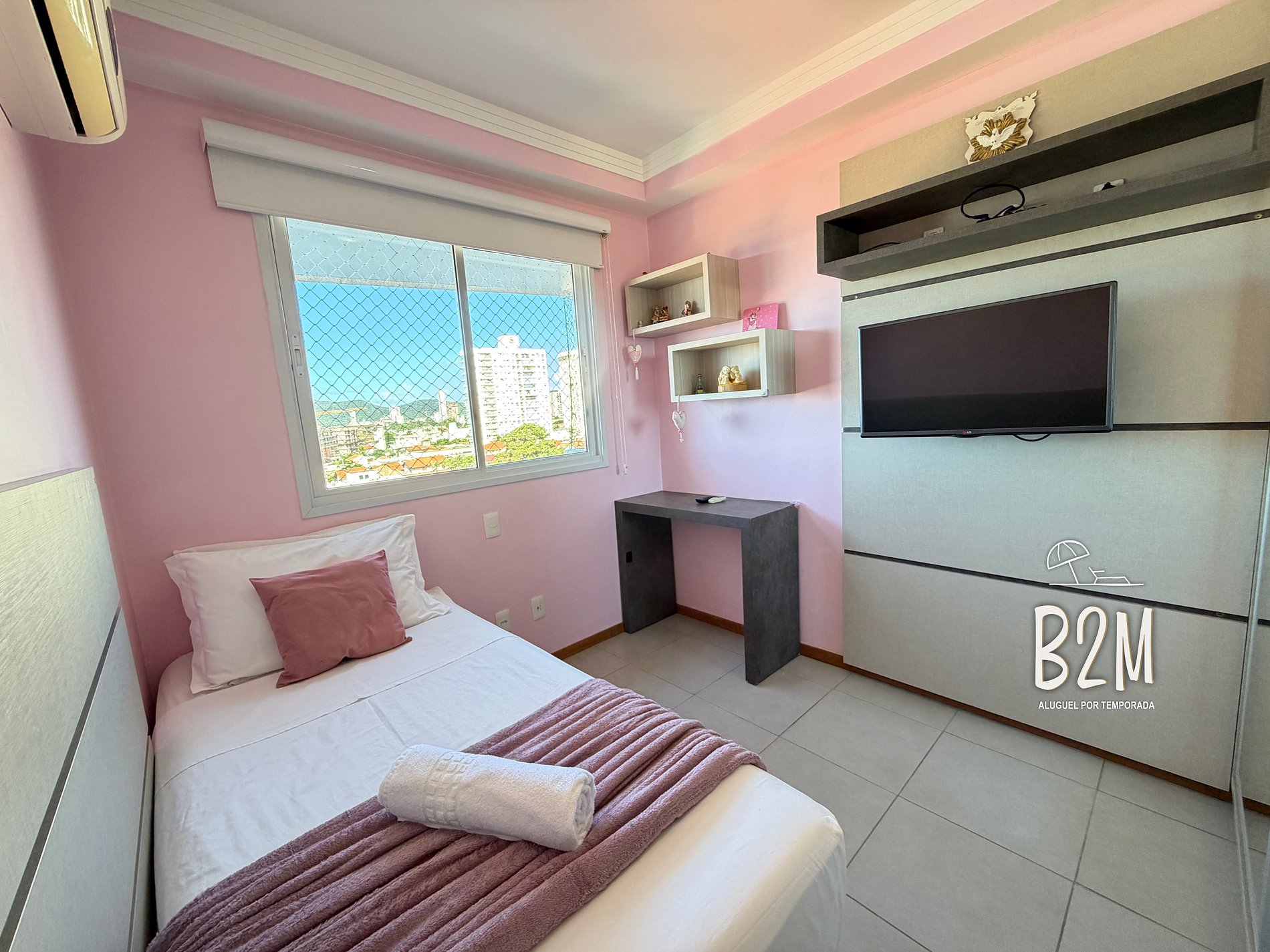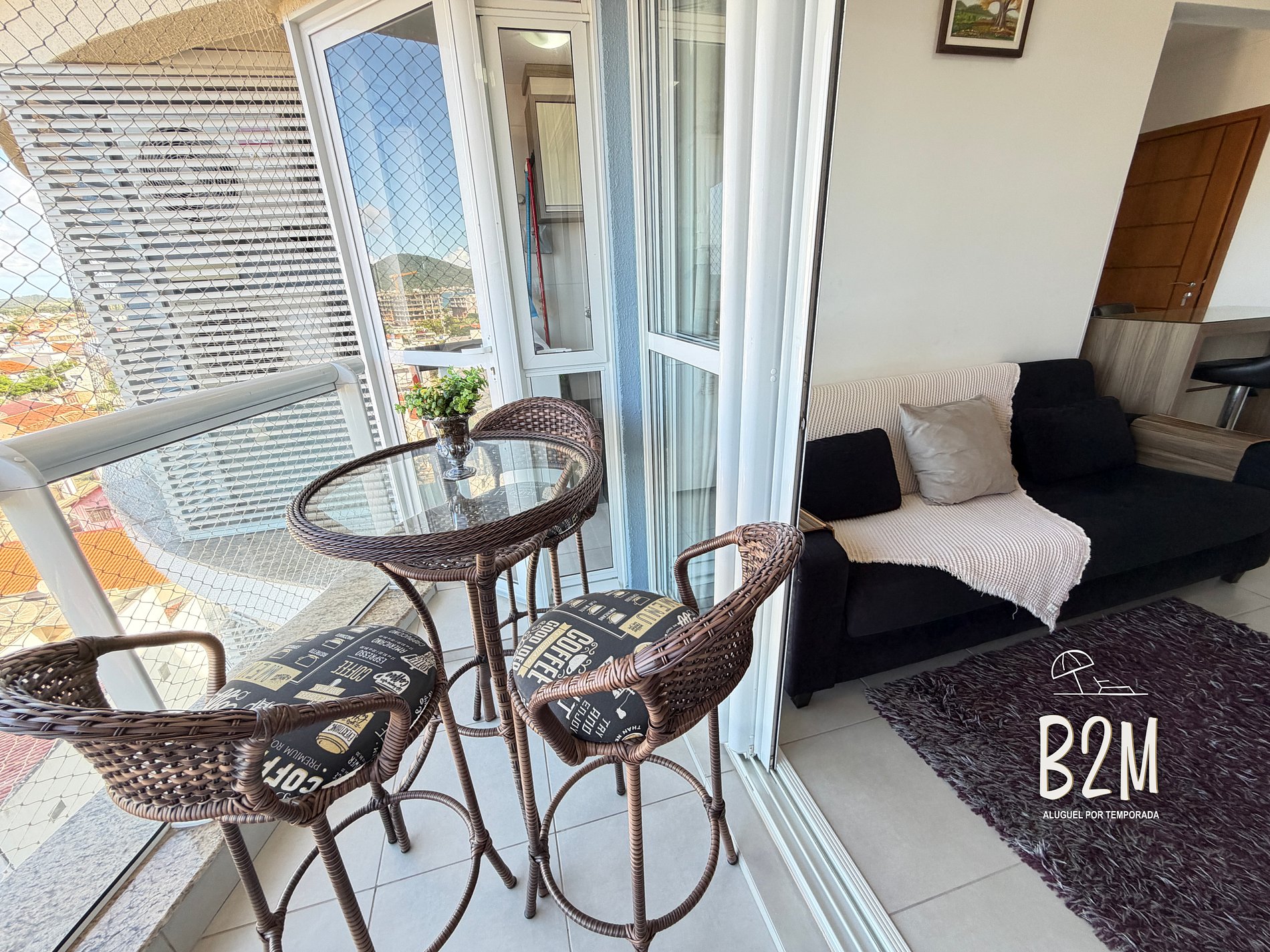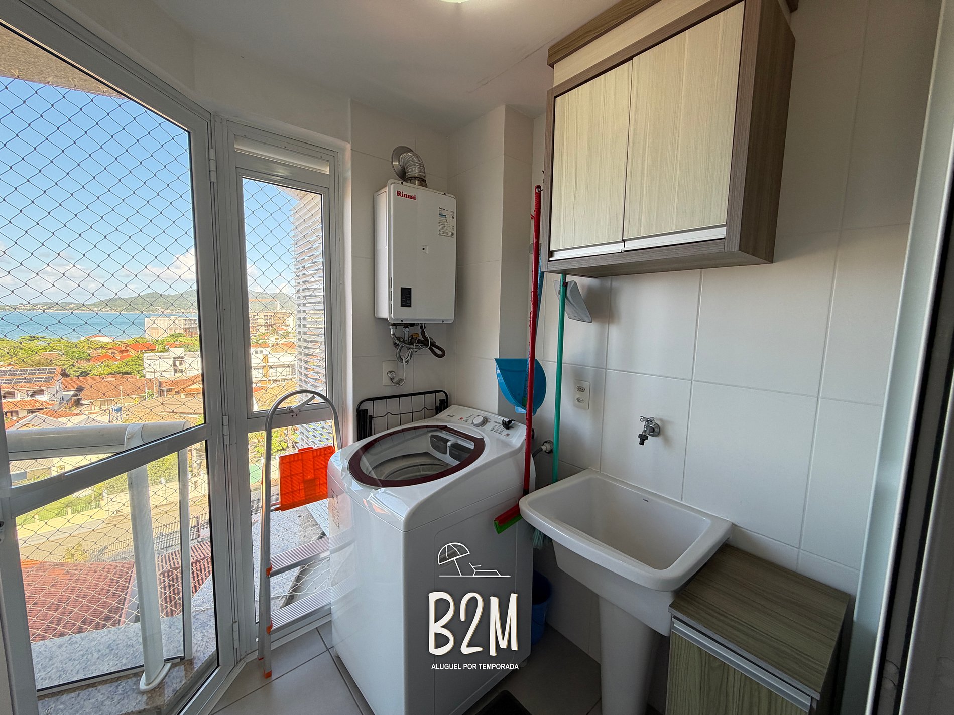 Esse apartamento possui tela de proteção nas janelas e sacadas e uma vista incrível do ma.