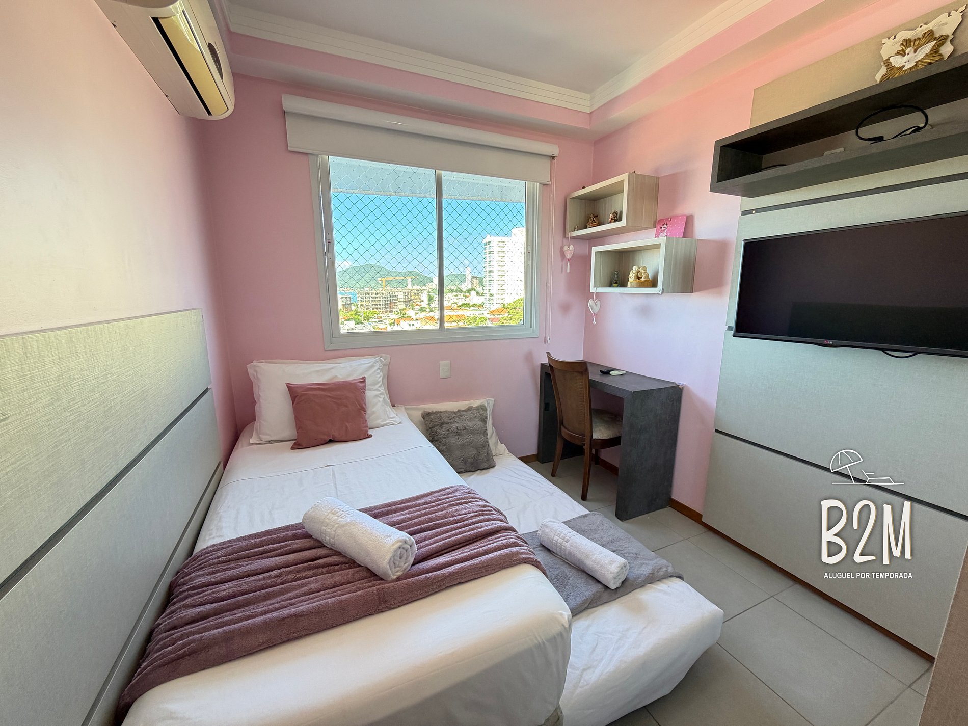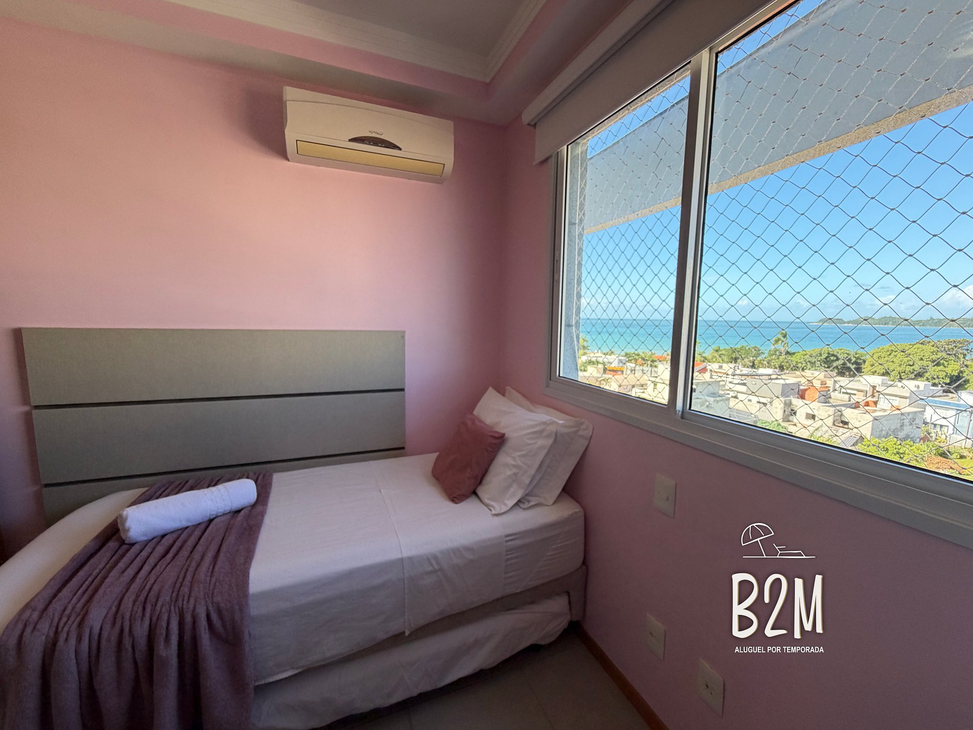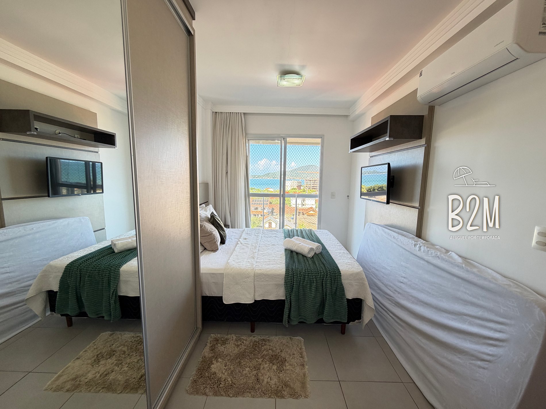 2 camas de solteiro, ar condicionado, armário, janela com vista para o mar