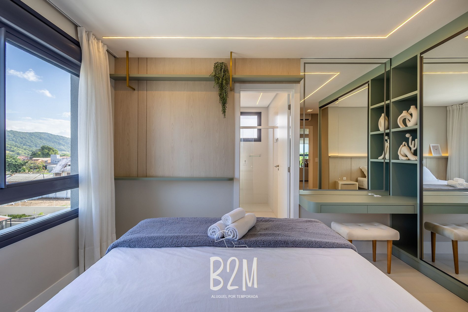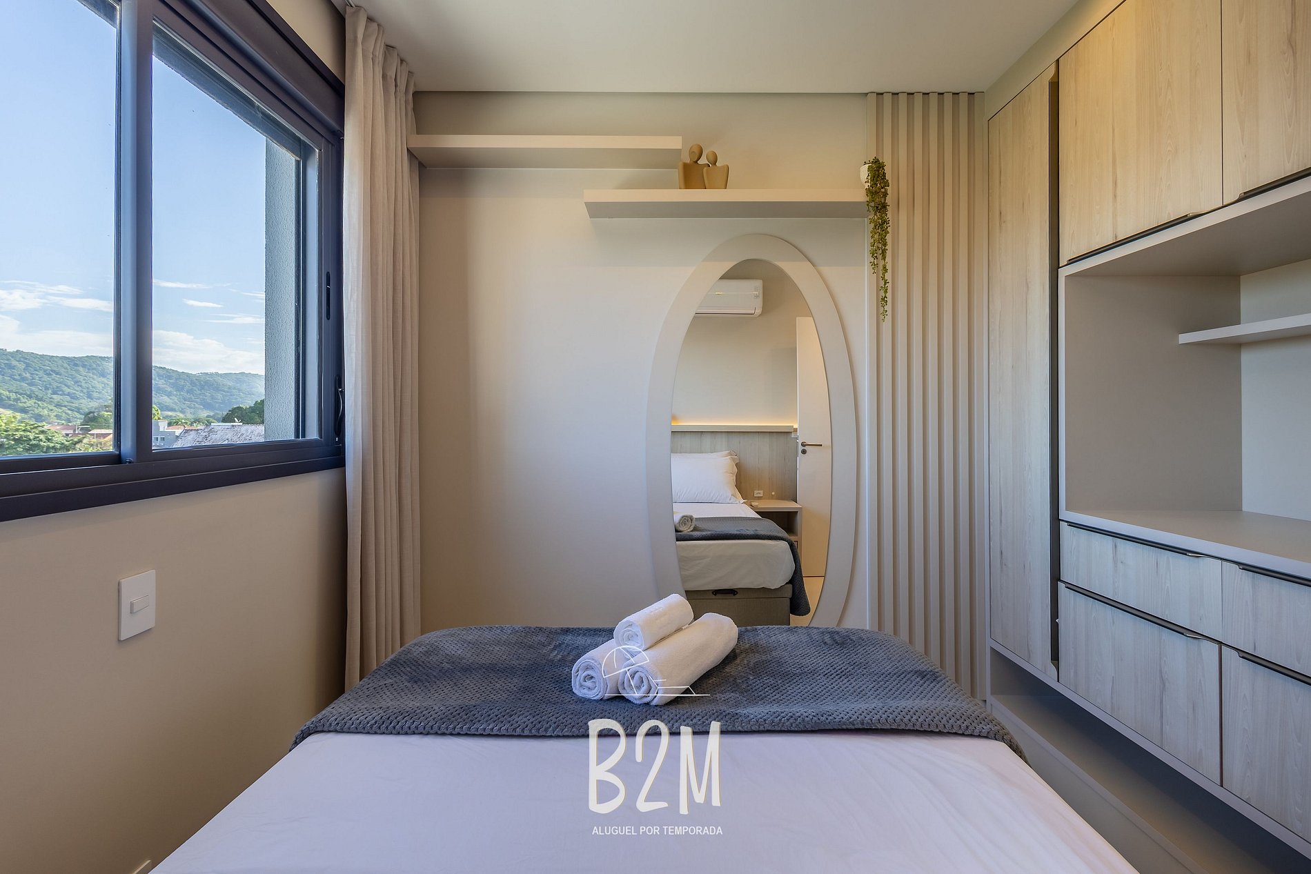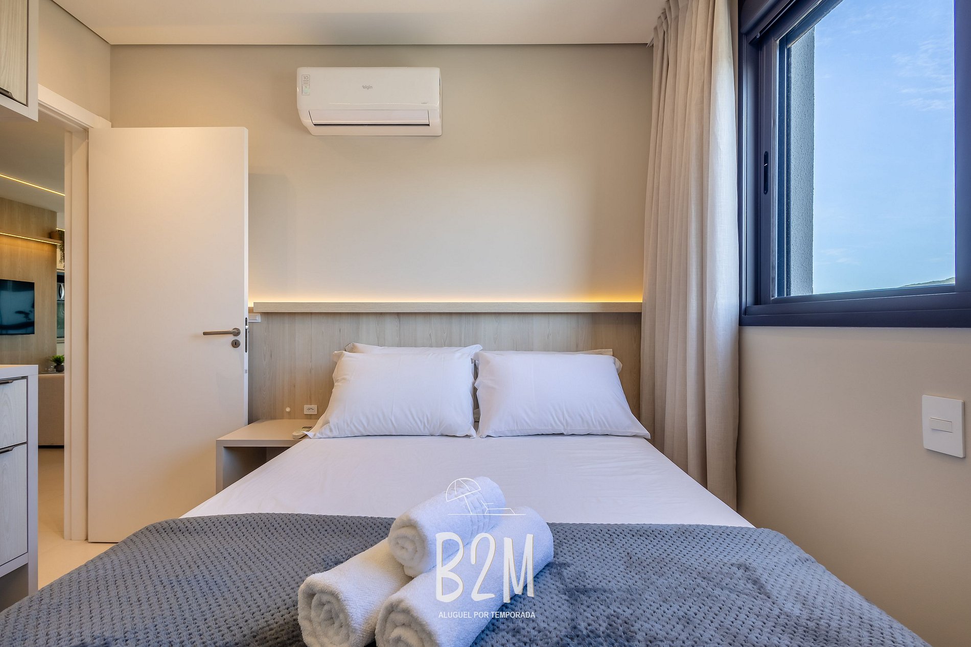 cama de casal, roupa de cama completa, ar condicionado, cortina com blackout, guarda roupa