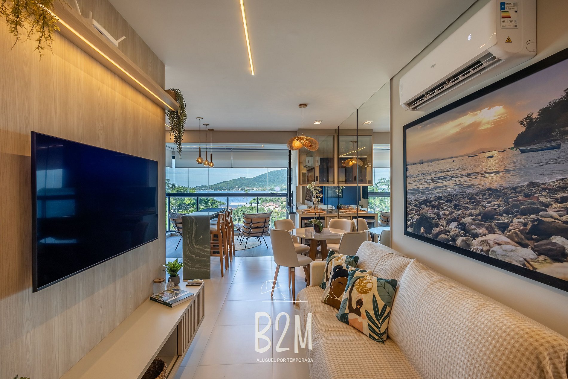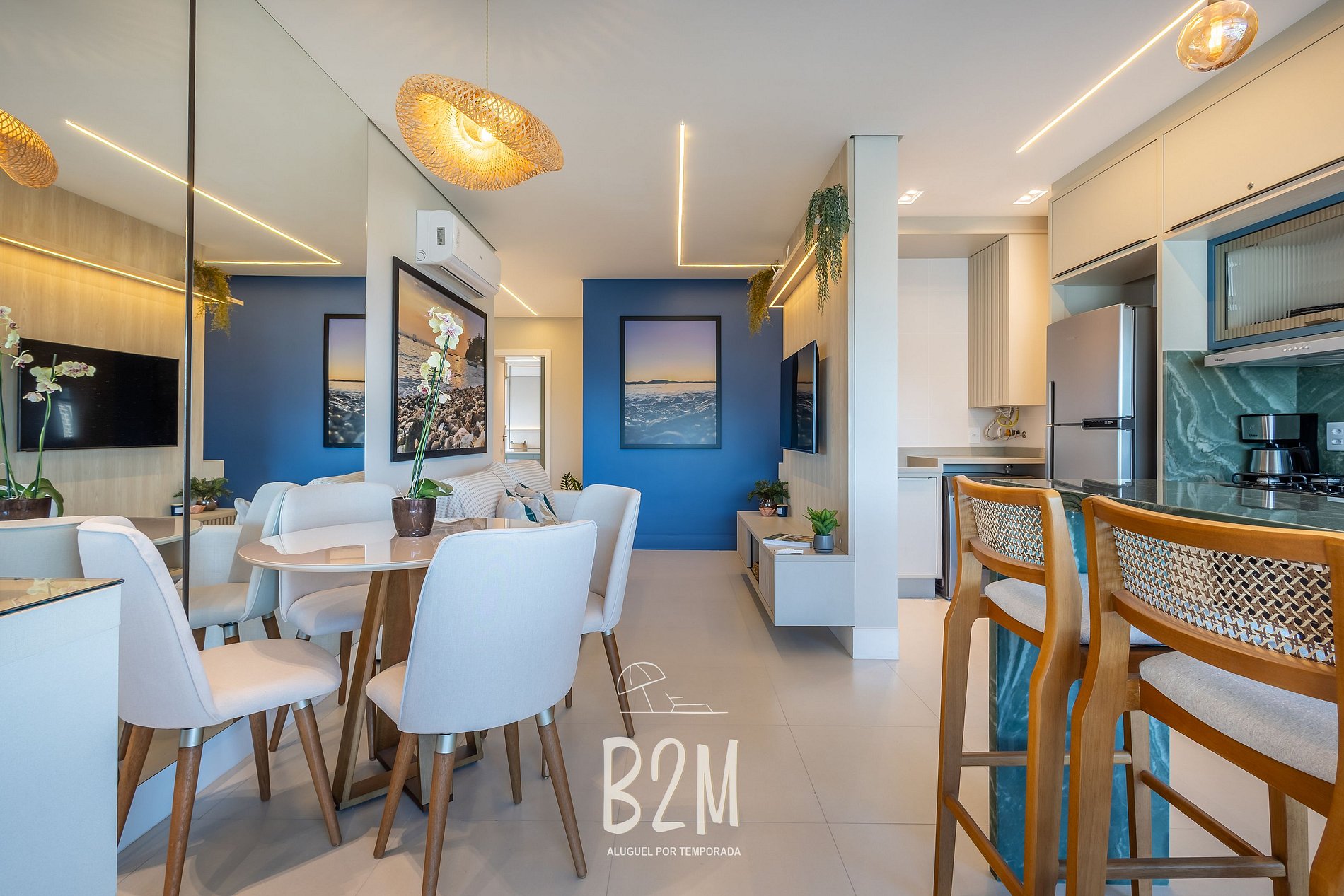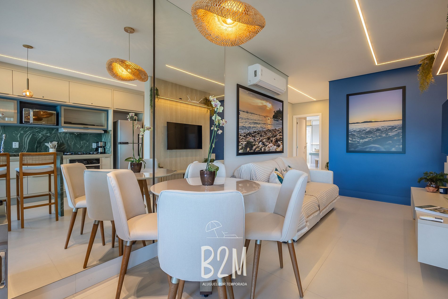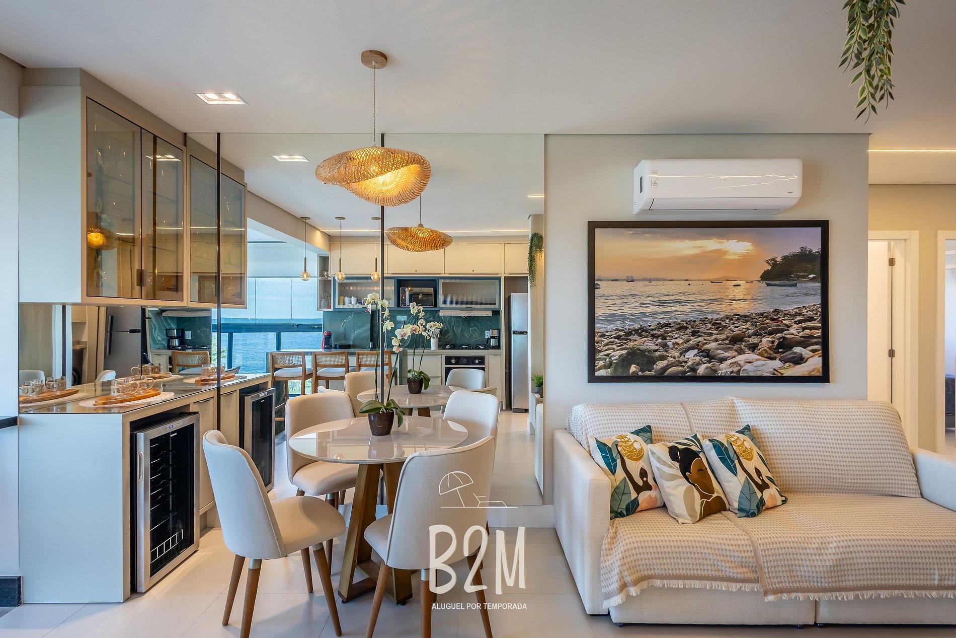 sofá, estante, smartv, adega, ar condicionado, mesa de jantar para 4 pessoas