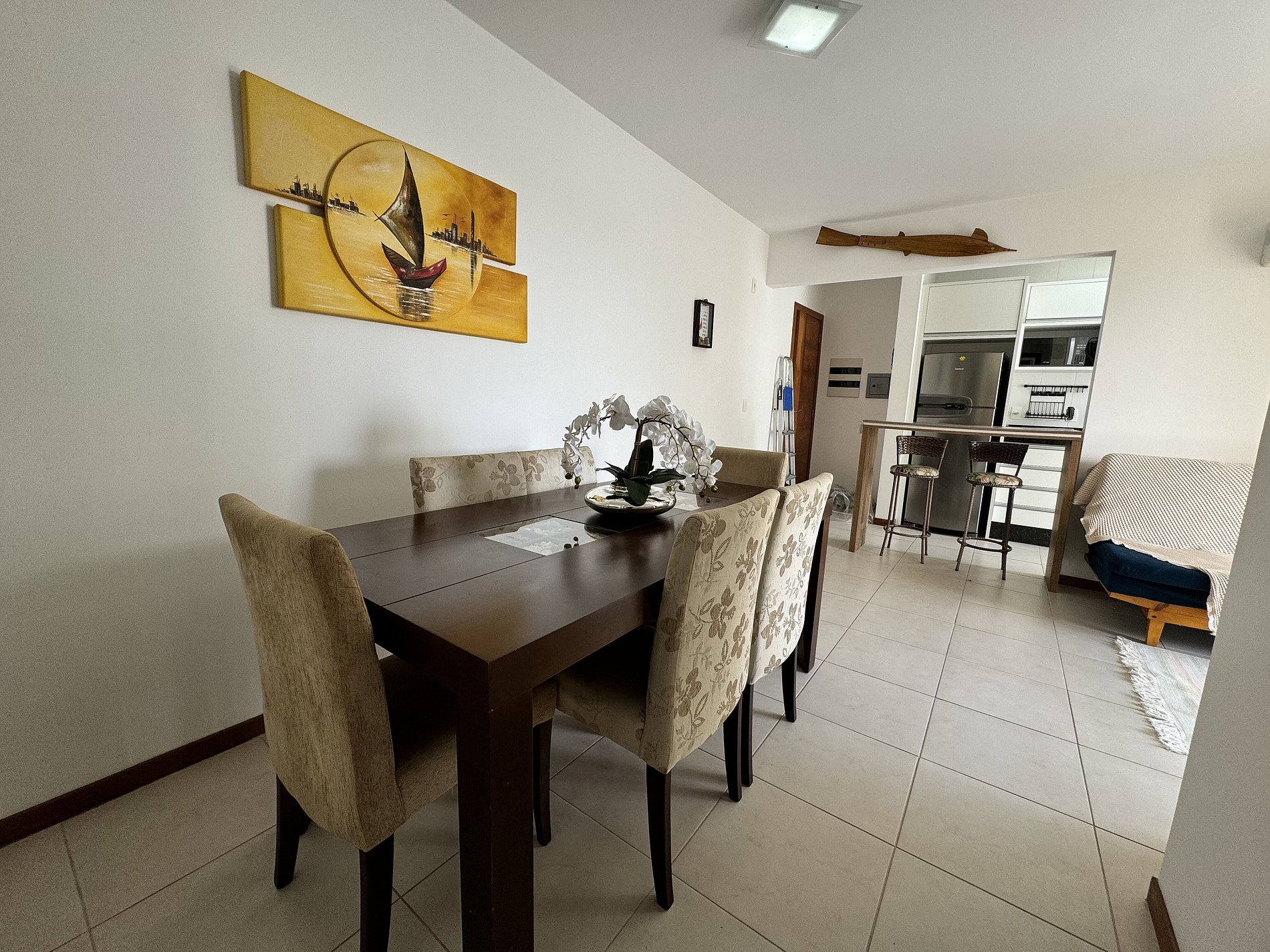 sofá, 2 poltronas, televisão, internet wifi, ar condicionado, mesa de jantar para 6 pessoas